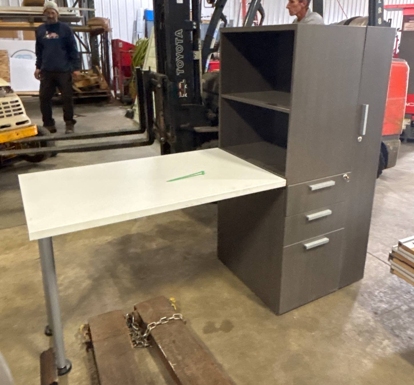 6908 Desk with Shelving and Storage Cabinet - PICK UP ALTERNATE LOCATION ELKHART INDIANA -JW