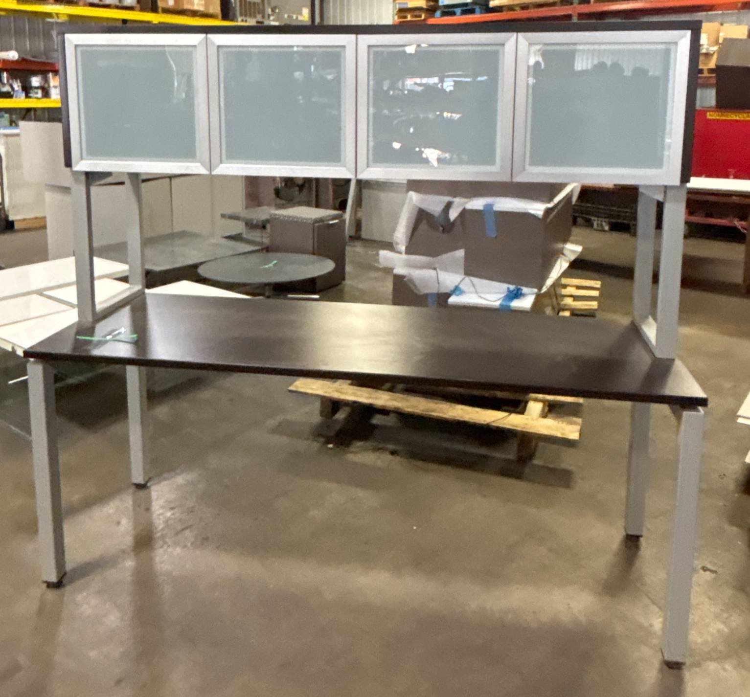 6909 Office Workstation Desk with Frosted Glass Overhead Storage - PICK UP ALTERNATE LOCATION ELKHART INDIANA -JW