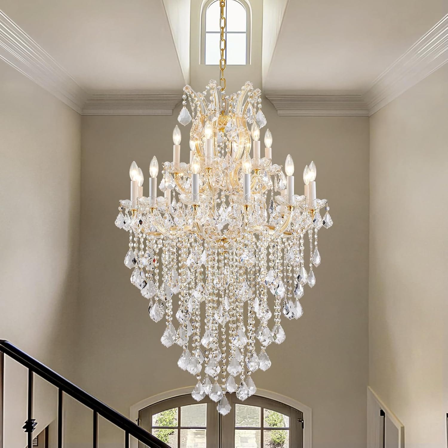 631008 DUNFIZZ - Large Modern Gold Crystal Chandeliers 18-Light Foyer Chandelier for High Ceiling Maria Theresa Crystal