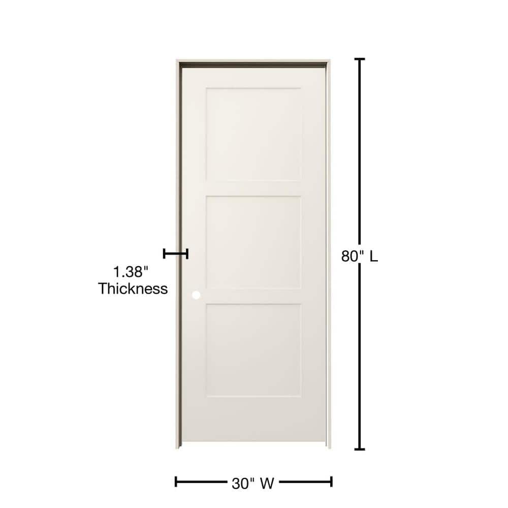 631026 JELD-WEN - 30 in. x 80 in. 3 Panel Birkdale Primed Right-Hand Smooth Solid Core Molded Composite Single Prehung Interior Door