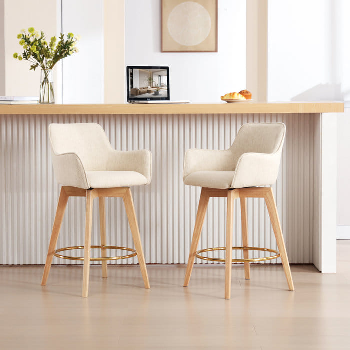 631034 CORRIGAN STUDIO - Lovetro Swivel Full Back Arms Upholstered 25.8H Counter Stool with Solid Rubberwood Frame and Gold Footrest (Set of 2)
