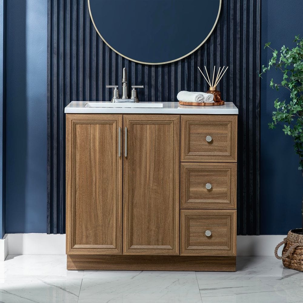 631035 GLACIER BAY - Bannon 37 in. Single Sink Nocera Bath Vanity with Granite-Look Colorpoint White Cultured Marble Top (Assembled) - SEE PRODUCT DETAILS