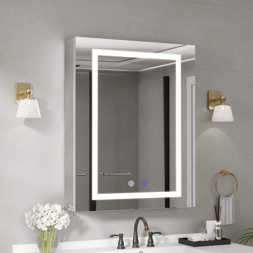 631036 SIMPLE PROJECT - 24 in. W x 30 in. H Rectangular Aluminum Light Medicine Cabinet with Mirror, Defogging and Memory Function