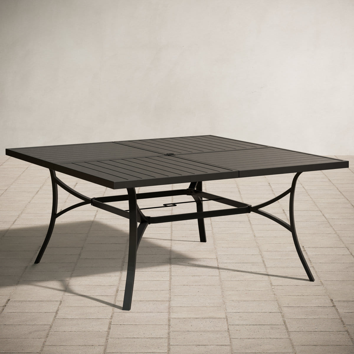 631022 PHI VILLA - Black Slat Rectangle Metal Patio Outdoor Dining Table with 88 in. Blue Umbrella - SEE PRODUCT DETAILS