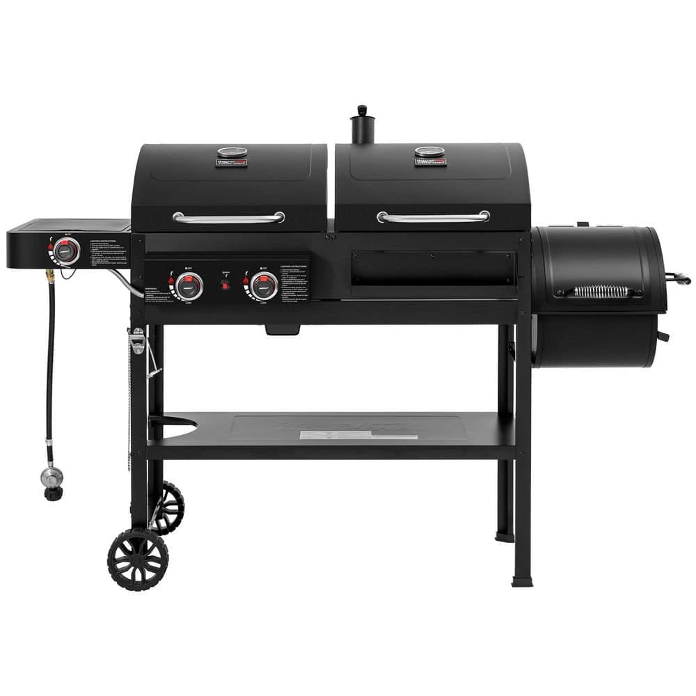 631050 ROYAL GOURMET - 2-Burner Propane Gas and Charcoal Combo Grill with Offset Smoker Side Burner in Black