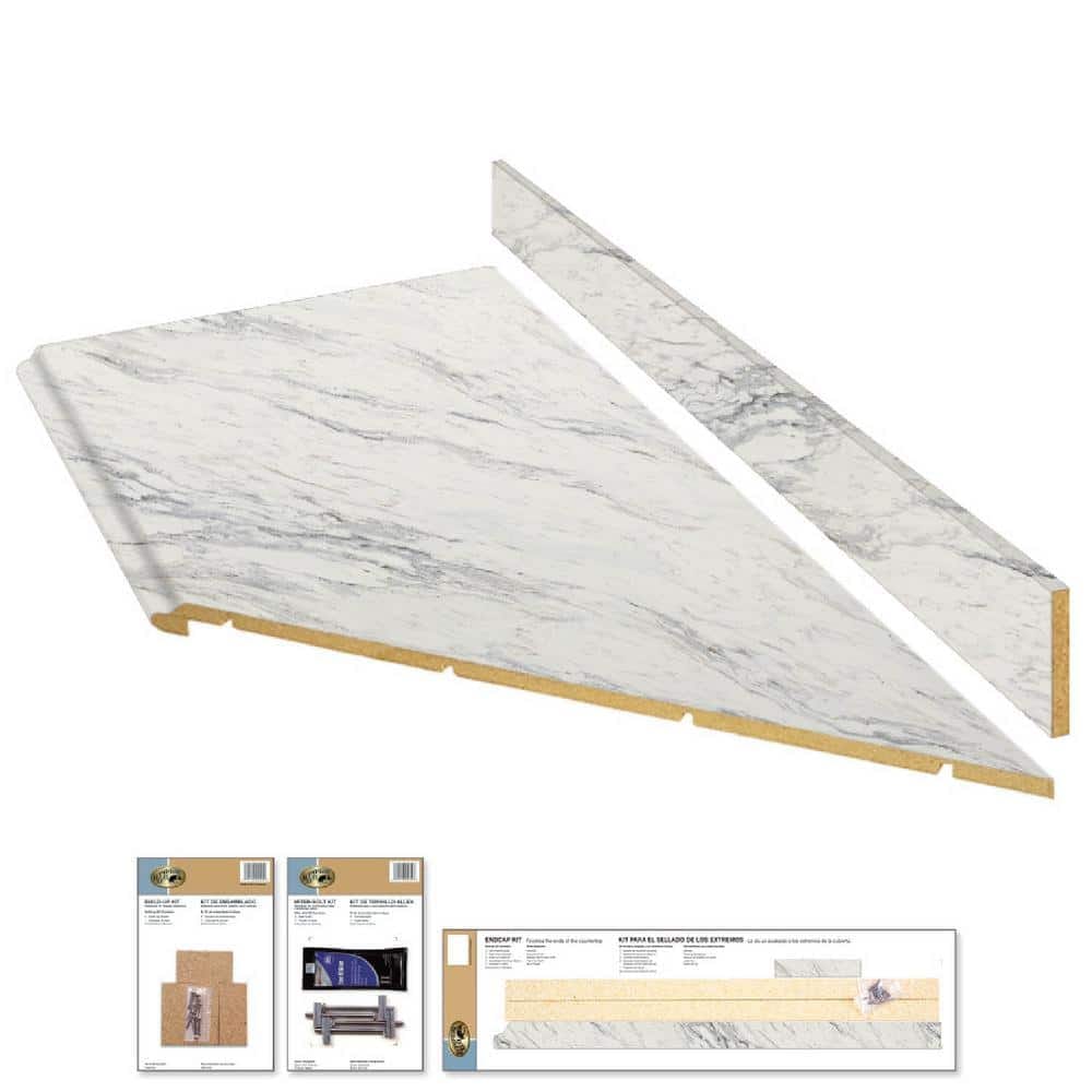 631063 HAMPTON BAY - 8 ft. Right Miter Laminate Countertop Kit Included in Calcutta Marble with Full Wrap Ogee Edge and Backsplash - SEE PRODUCT DETAILS