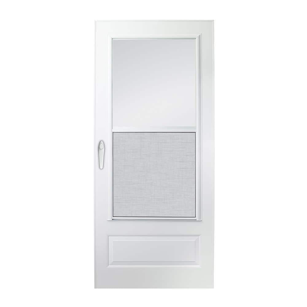 631071 EMCO - 100 Series Plus 36 in. x 80 in. White Universal High-View Self-Storing Aluminum Storm Door with White Hardware