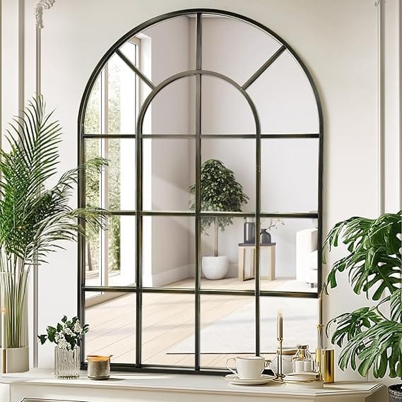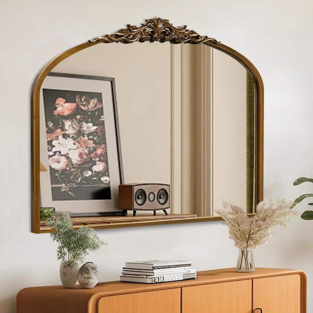 631075 SXIAWE - 36 in. W x 29 in. H Baroque Arched Classic Frame Handcrafted Antique Gold Wall Mirror