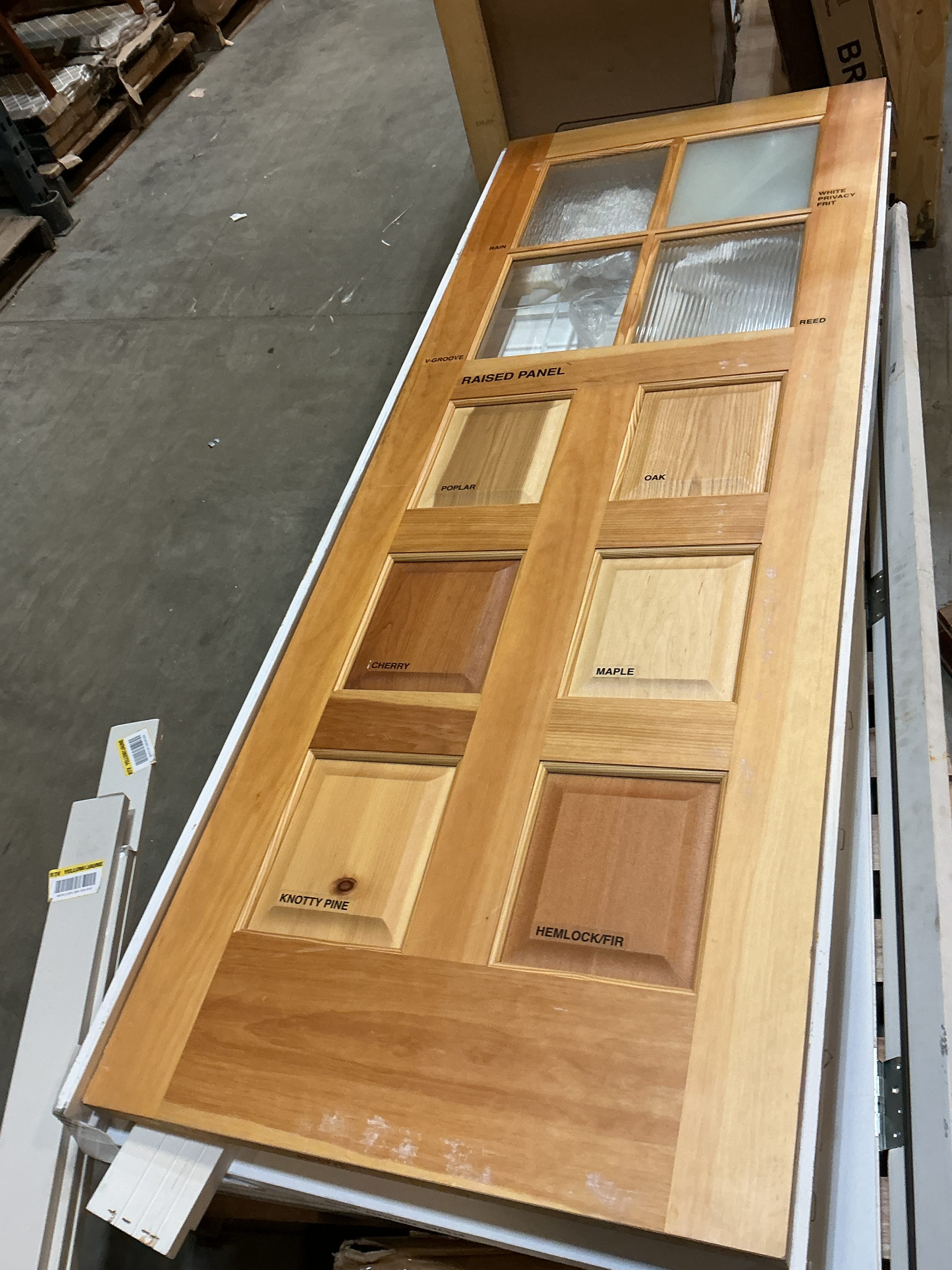 631011 CALHOME - 36 in. x 80 in. Reversible Decorative Glass Gray Modern Exterior Fiberglass Front Door Slab Door