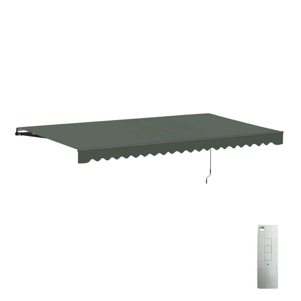 631018 ALEKO - 20 ft. Caribbean Polyester Motorized Retractable Patio Awning 10 ft. Projection in Forest Green Black Frame