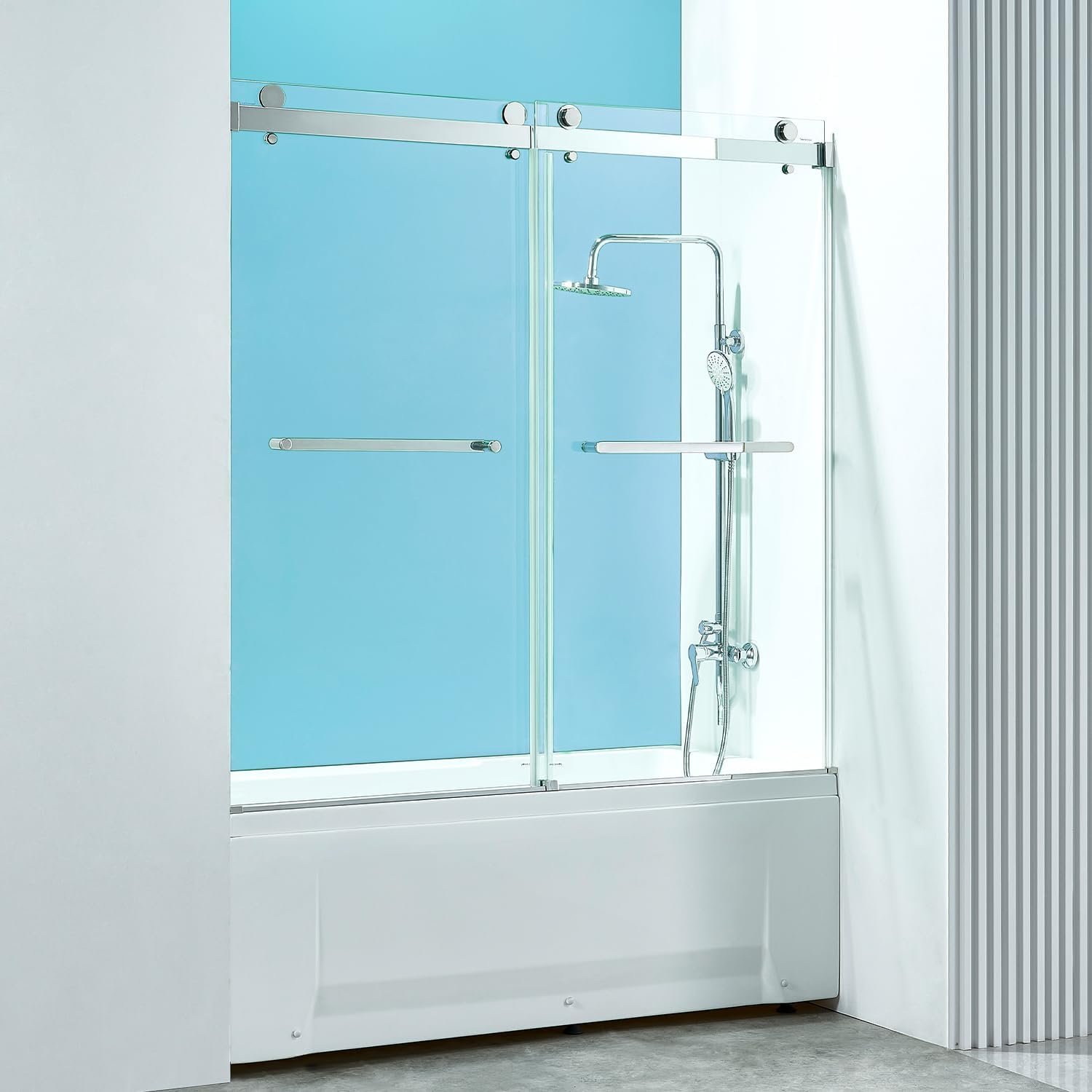 631021 YTTSOYTS - H Frameless Double Sliding Tub Door Bathtub Enclosure Shower Door