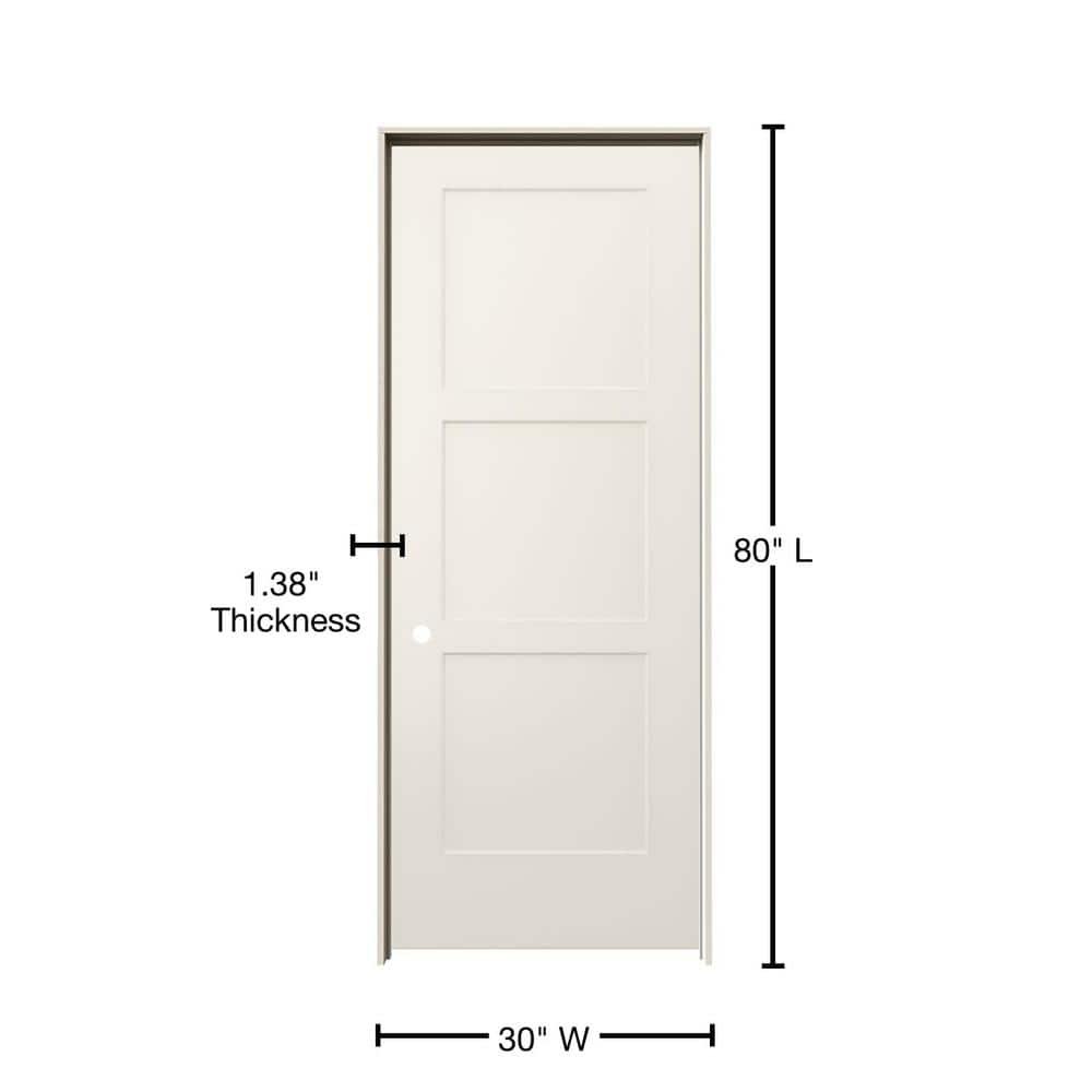 631025 JELD-WEN - 30 in. x 80 in. 3 Panel Birkdale Primed Right-Hand Smooth Solid Core Molded Composite Single Prehung Interior Door