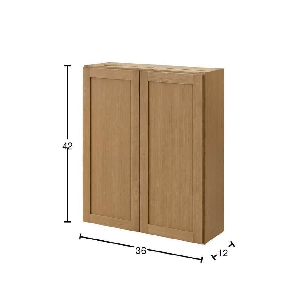 631037 HAMPTON BAY - Avondale 36 in. W x 12 in. D x 42 in. H Ready to Assemble Plywood Shaker Wall Kitchen Cabinet in White Oak