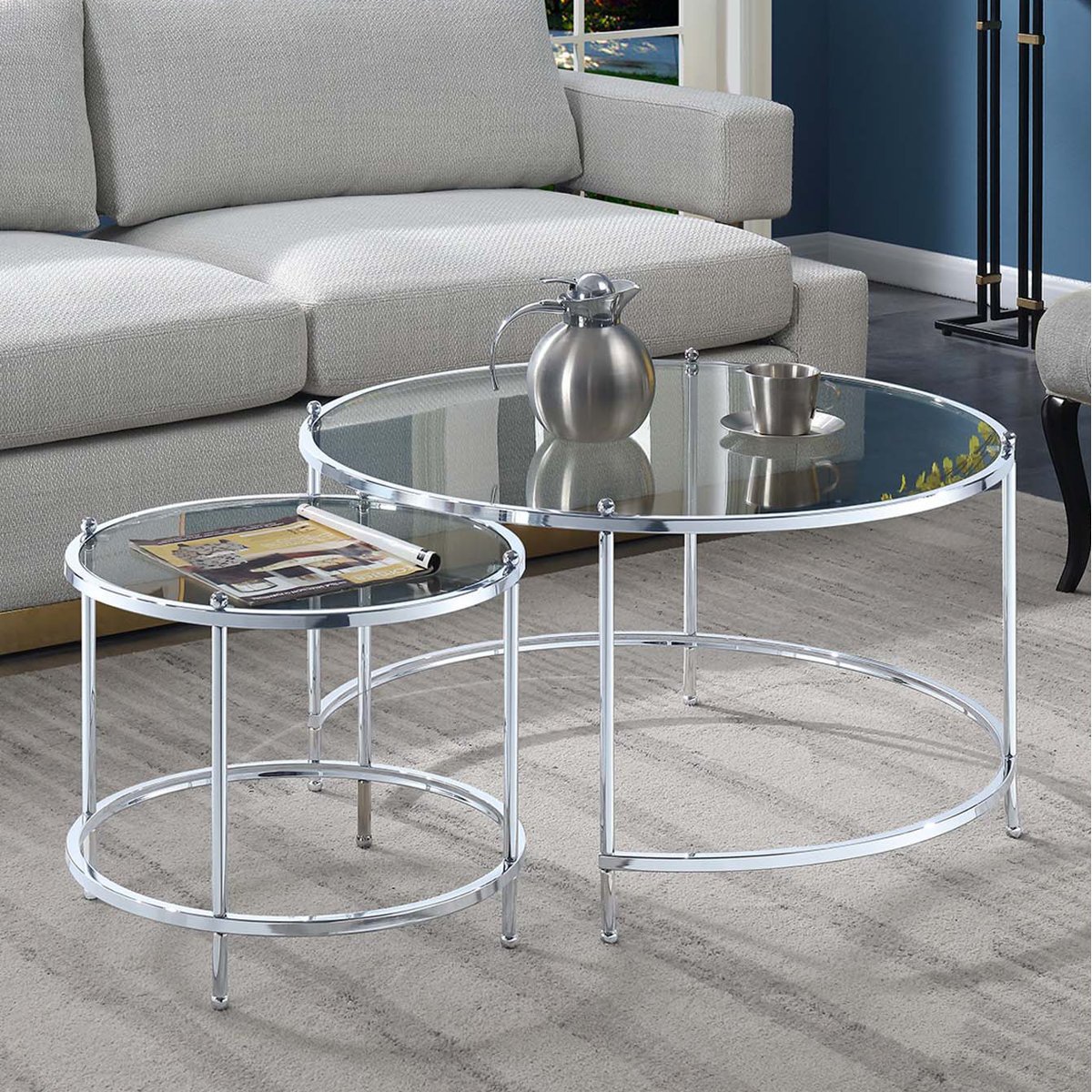 631042 - Tierra Modern Small Cross Legs Luxury Metal Leg & Glass Round Coffee Table