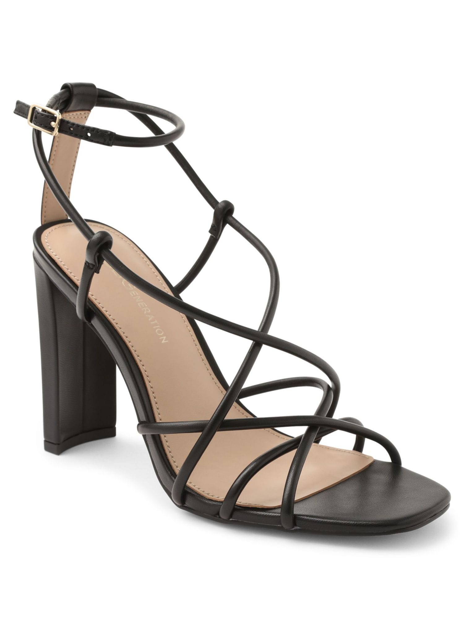 10311676 BCBGENERATION $99 MSRP Womens Black Crisscross Straps Ankle Strap Strappy Comfort Wanni Square Toe Sculpted Heel Buckle Leather Sandals Shoes 6.5 M