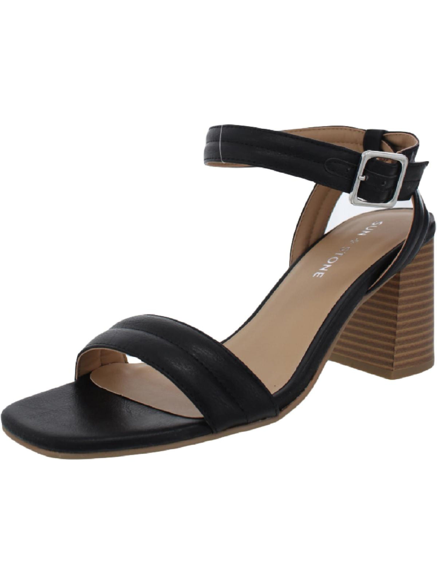 10370834 SUN STONE $59.50 MSRP Womens Black Channel Stitch Straps Ankle Strap Seffie Square Toe Block Heel Buckle Dress Sandals 9