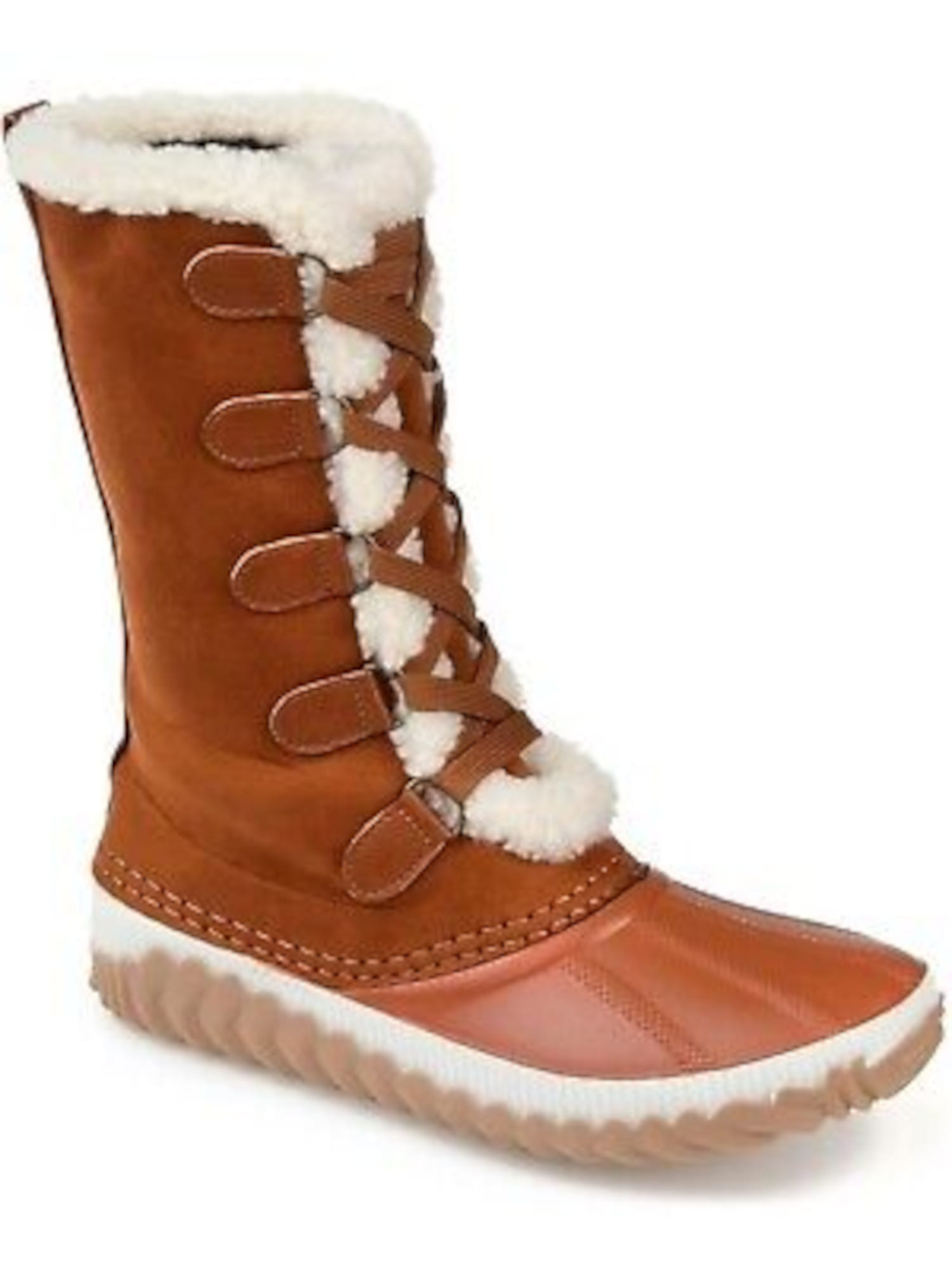 10371464 JOURNEE COLLECTION $99.99 MSRP Womens Brown Duck Boot Fur Trim Waterproof Blizzard Round Toe Wedge Lace-Up Snow Boots 12