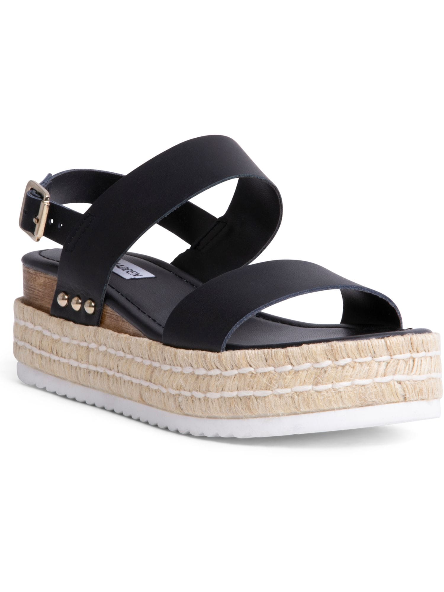 10371472 STEVE MADDEN $79 MSRP Womens Black 1" Platform Adjustable Metal-Stud Detailing Comfort Padded Catia Round Toe Wedge Buckle Leather Espadrille Shoes 9.5