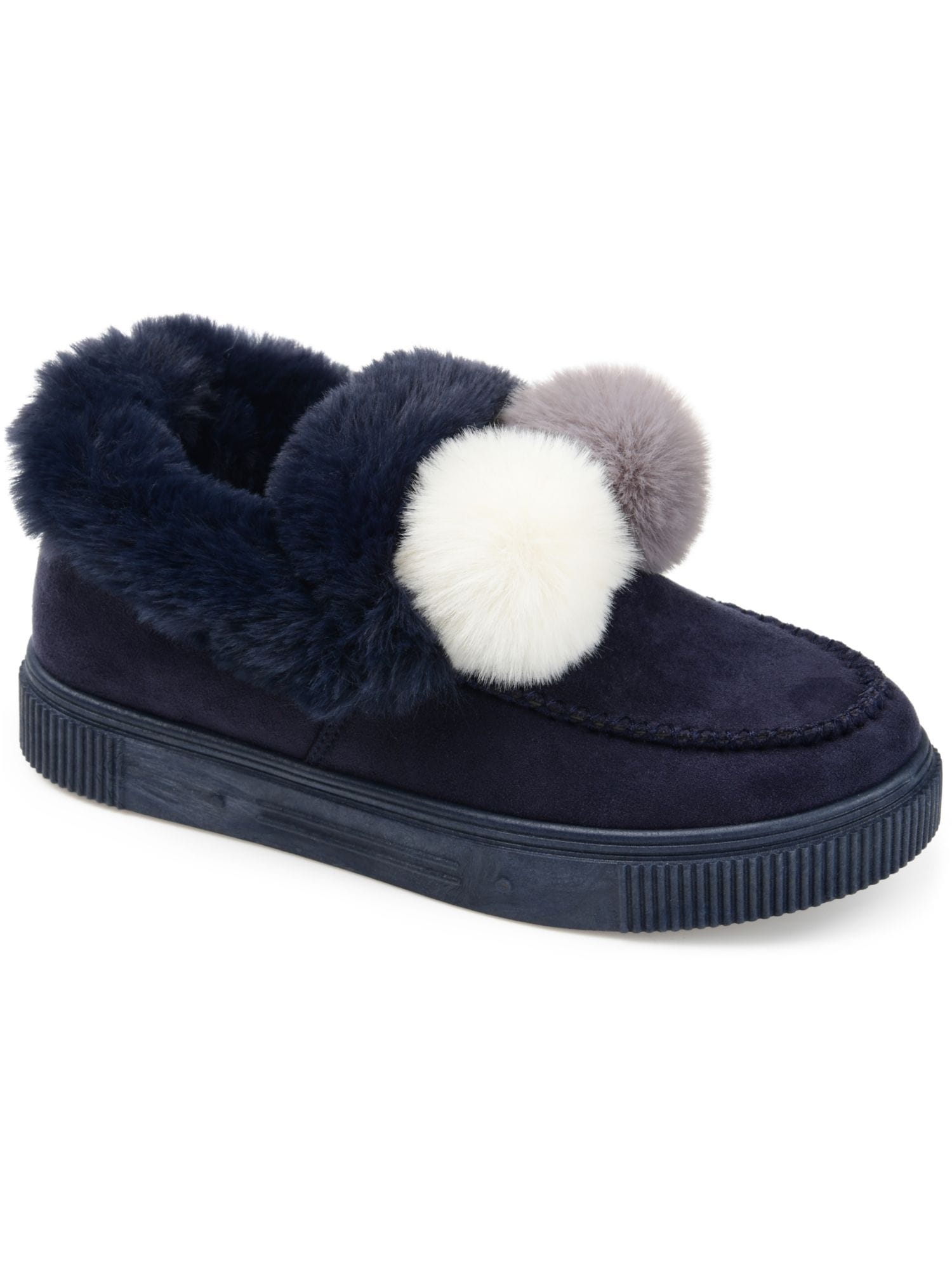 10371485 JOURNEE COLLECTION $64.99 MSRP Womens Navy Pom Pom Whipstitch Cushioned Sunset Round Toe Platform Slip On Slippers 7