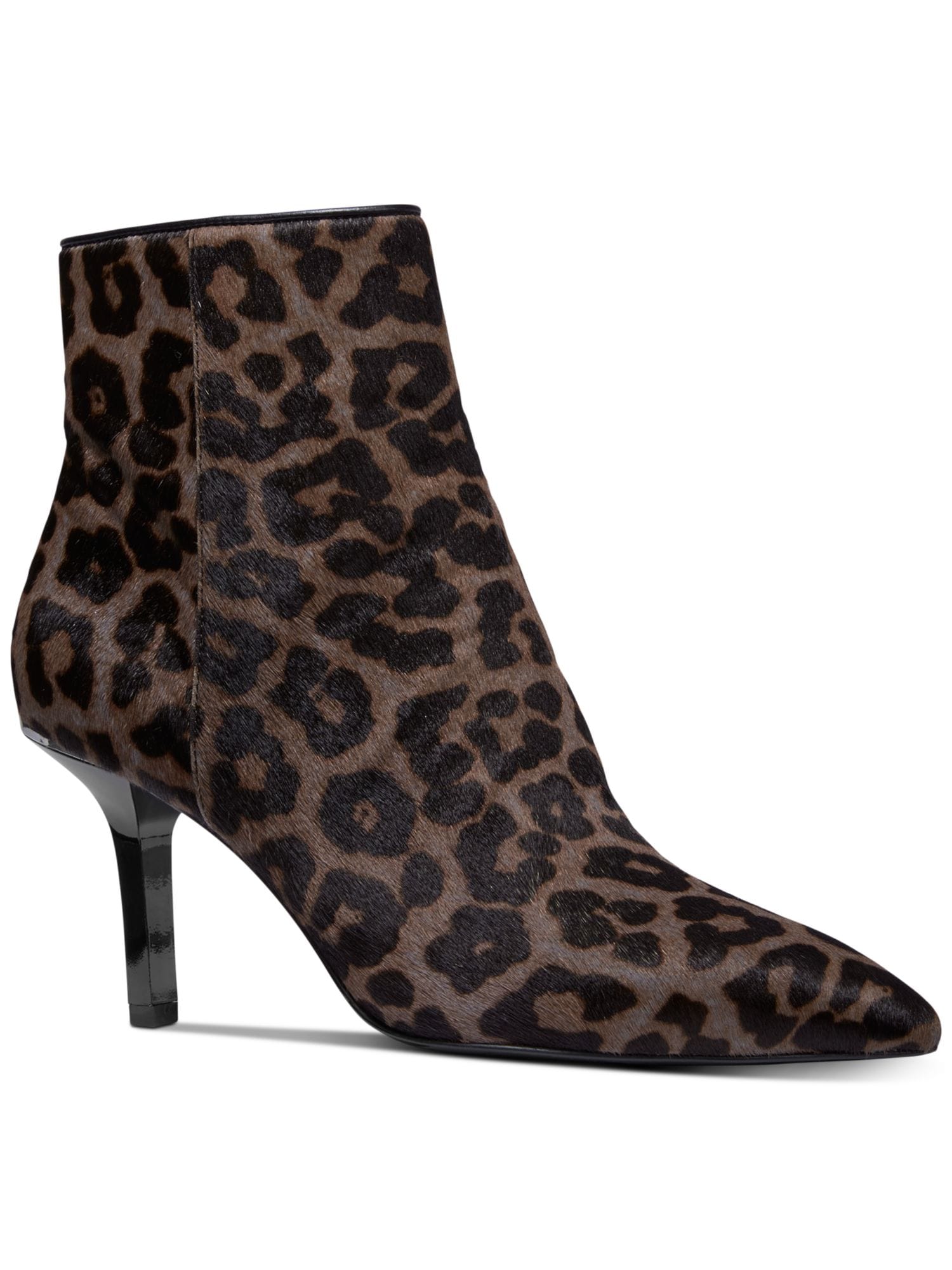 10404800 MICHAEL MICHAEL KORS $250 MSRP Womens Brown Leopard Print Calf Hair Comfort Logo Katerina Stiletto Zip-Up Booties 9 M