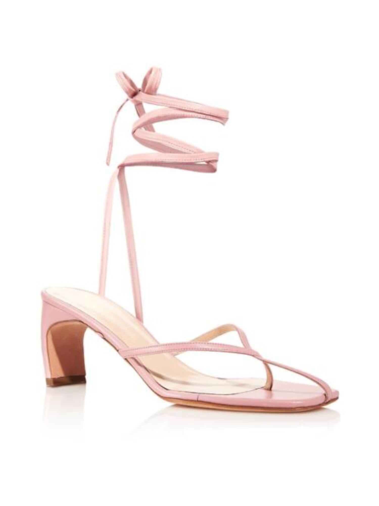 10406555 ELLEME $395 MSRP Womens Pink Padded Ficelle Square Toe Block Heel Lace-Up Leather Thong Sandals 38.5