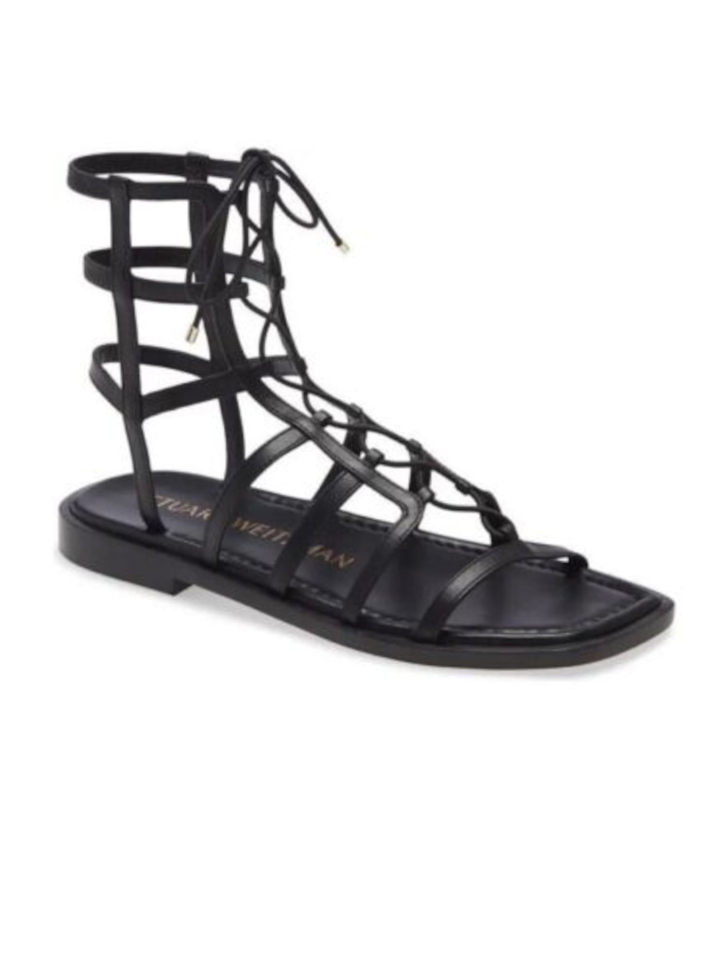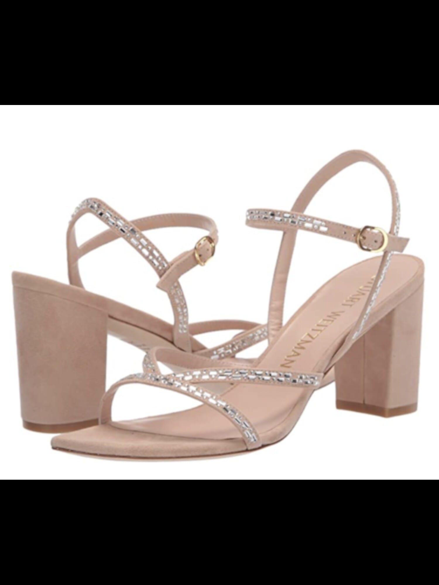 10406554 STUART WEITZMAN $550 MSRP Womens Beige Embellished Strappy Harlowe Square Toe Block Heel Buckle Leather Dress Slingback Sandal 6