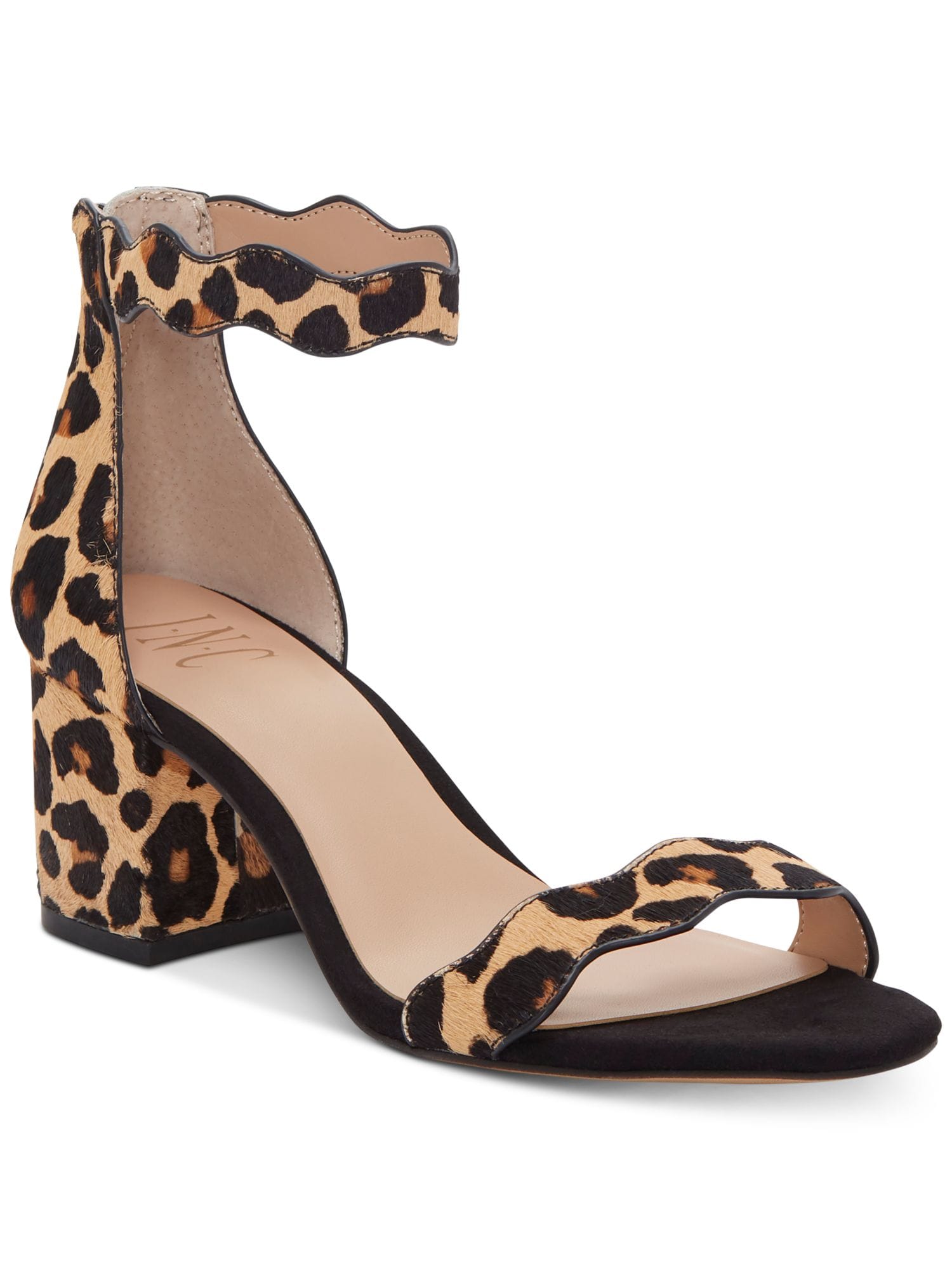 10406924 INC $89.50 MSRP Womens Brown Leopard Print Scalloped Ankle Strap Hadwin Round Toe Block Heel Zip-Up Dress Sandals 10 M