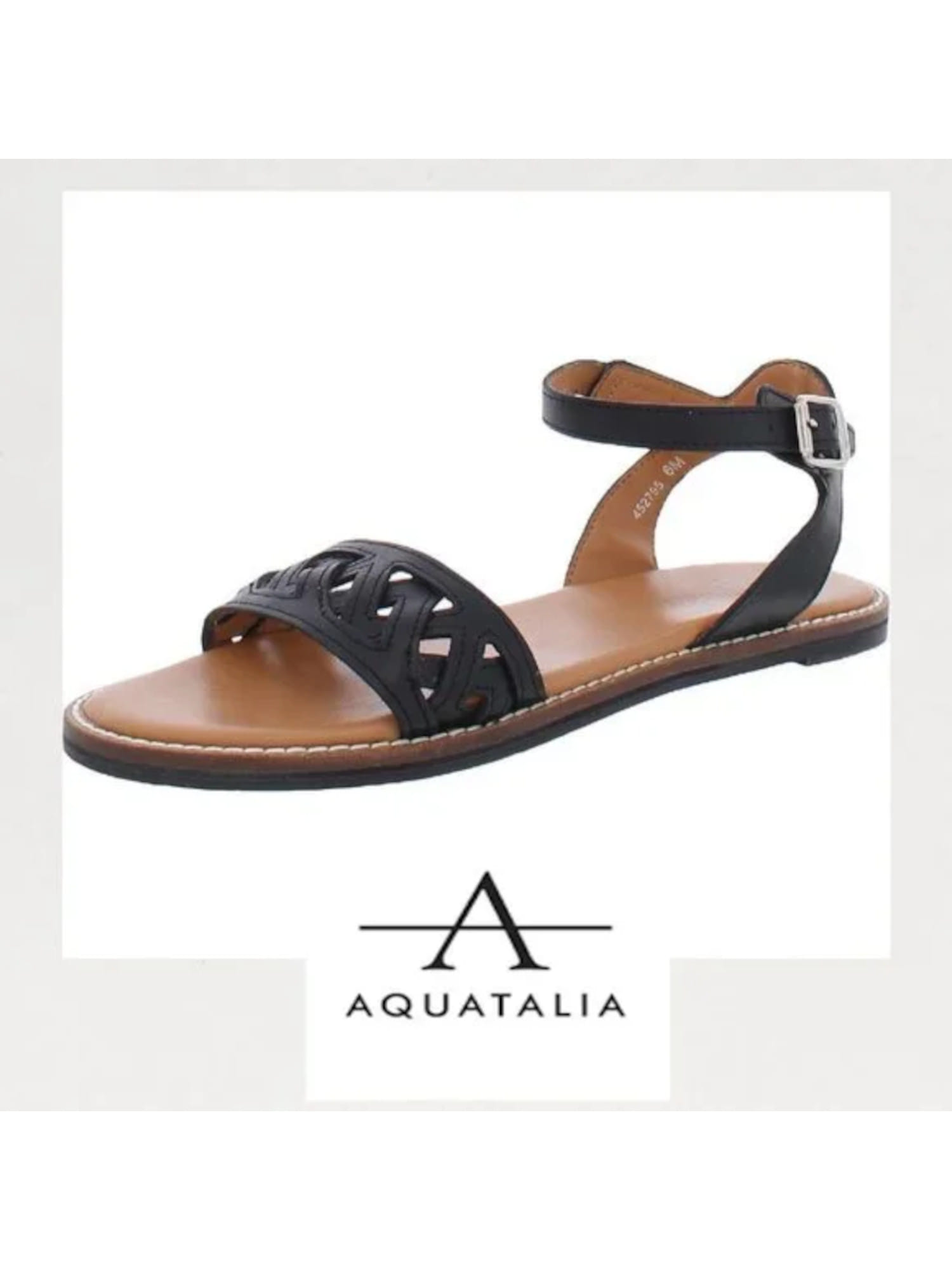 10406947 AQUATALIA $275 MSRP Womens Black Padded Woven Ankle Strap Audry Round Toe Buckle Leather Slingback Sandal 8.5 M