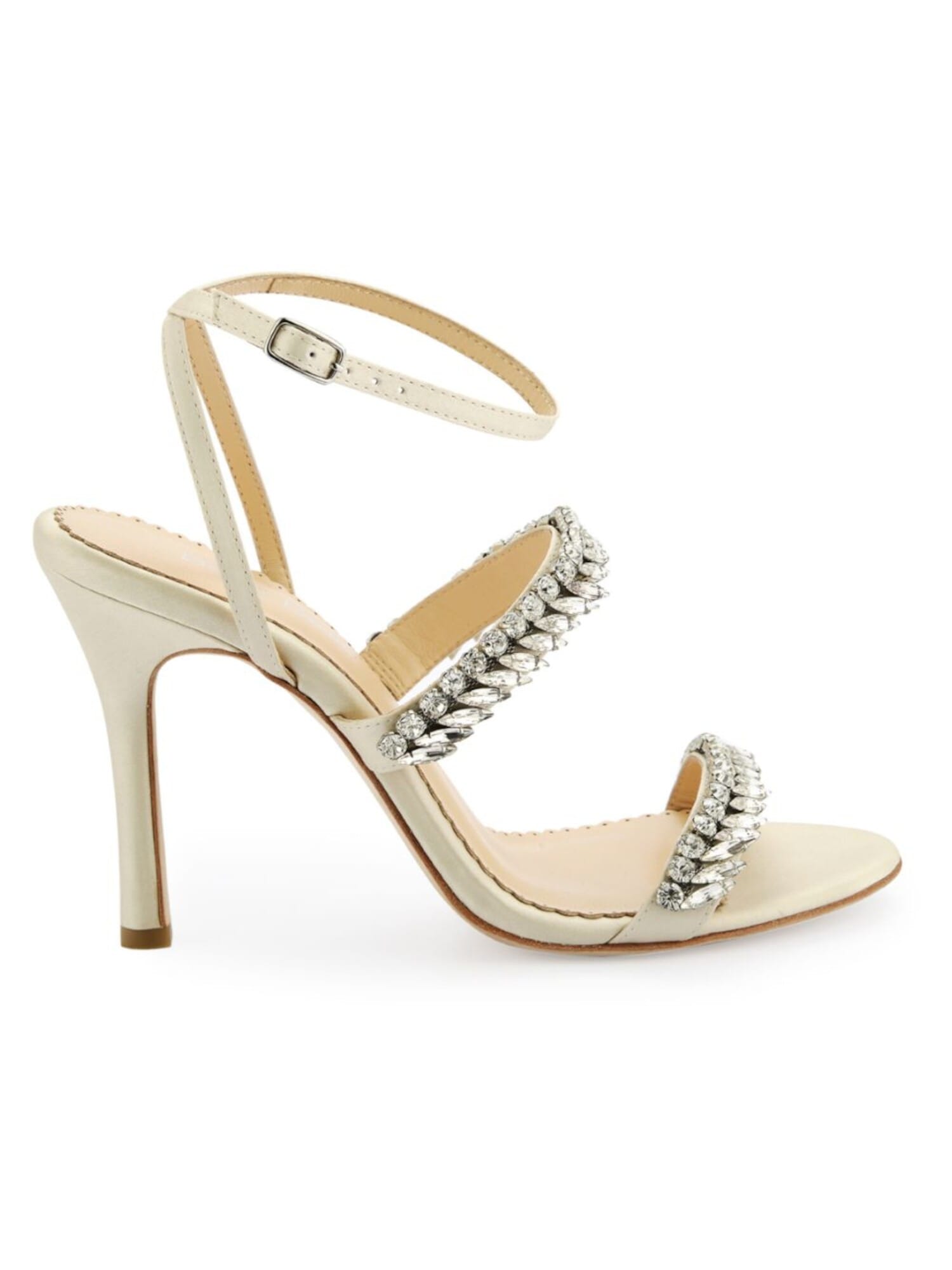10406961 BELLA BELLE $295 MSRP Womens Ivory Padded Embellished Strappy Belinda Round Toe Stiletto Buckle Dress Sandals Shoes 9 M