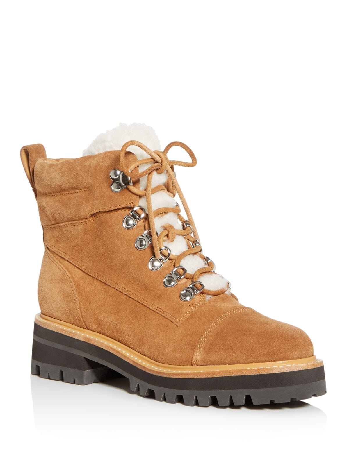 10407027 MARC FISHER $259 MSRP Womens Brown Fur Trim Lug Sole Idella Round Toe Block Heel Lace-Up Leather Hiking Boots 5 M