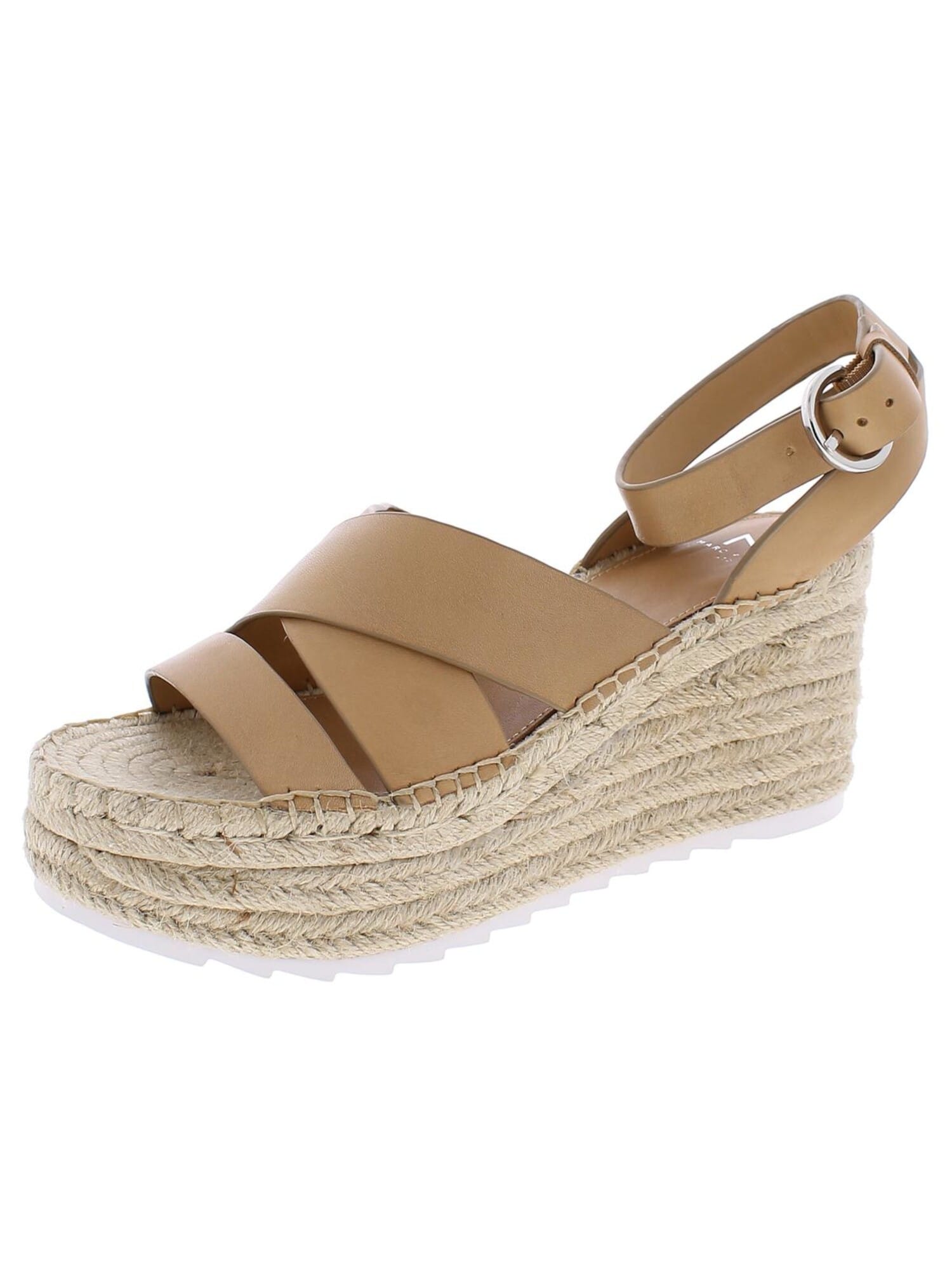 10407053 MARC FISHER $160 MSRP Womens Beige 2" Platform Adjustable Ankle Strap Raffa Round Toe Wedge Buckle Leather Espadrille Shoes 9.5 M