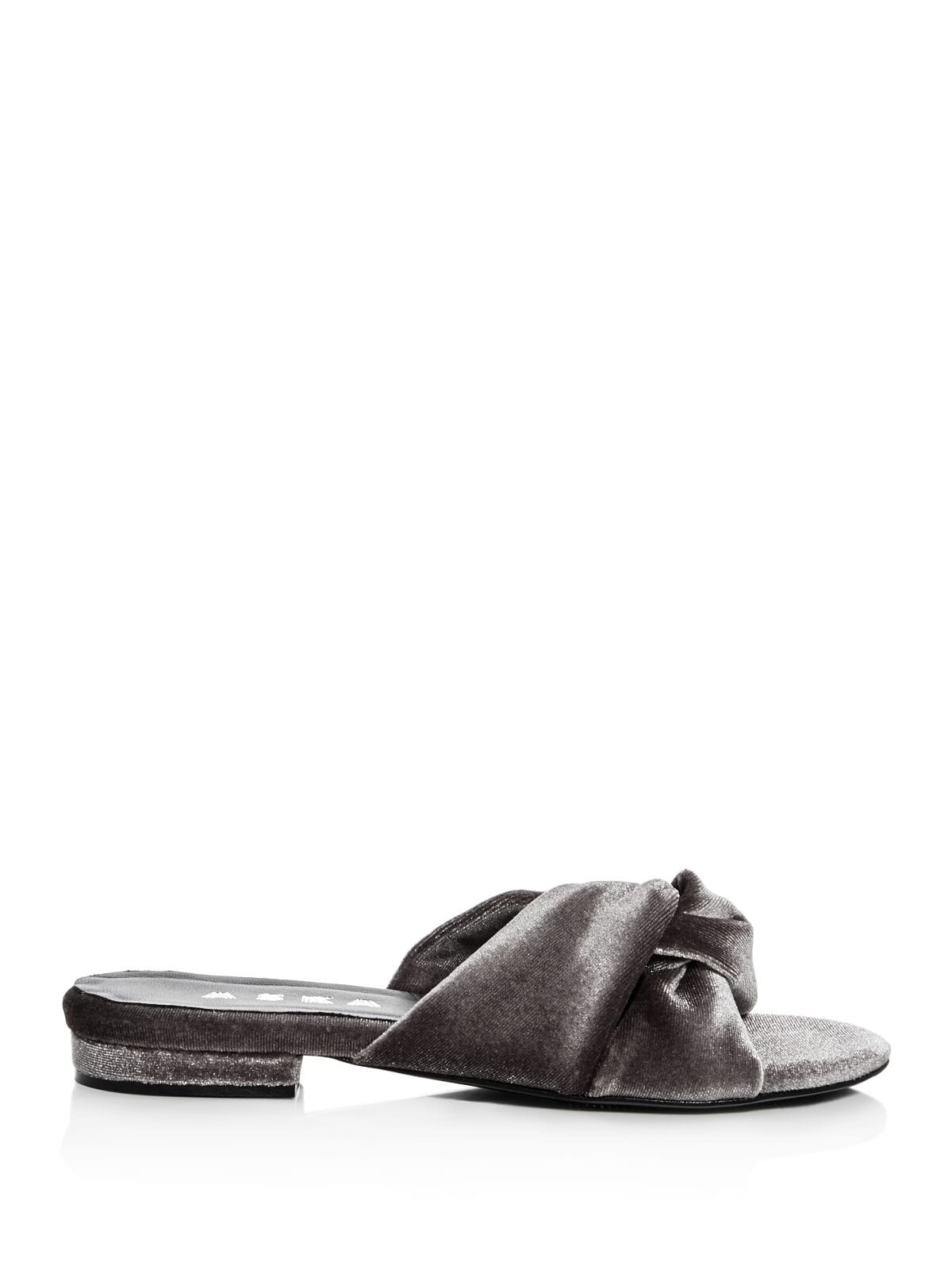10407054 ASKA $295 MSRP Womens Gray Knotted Design Padded Emily Round Toe Block Heel Slip On Leather Slide Sandals 39