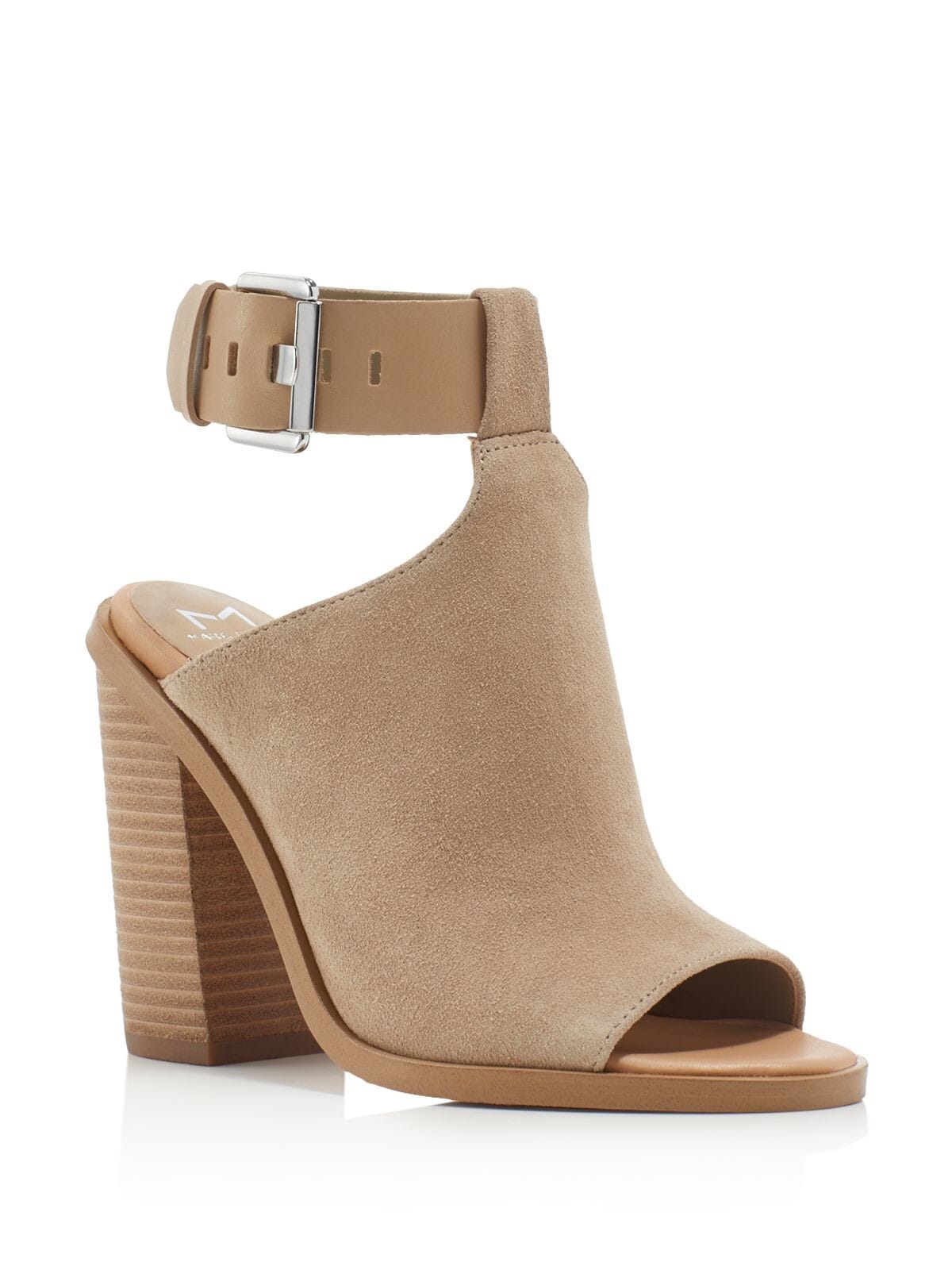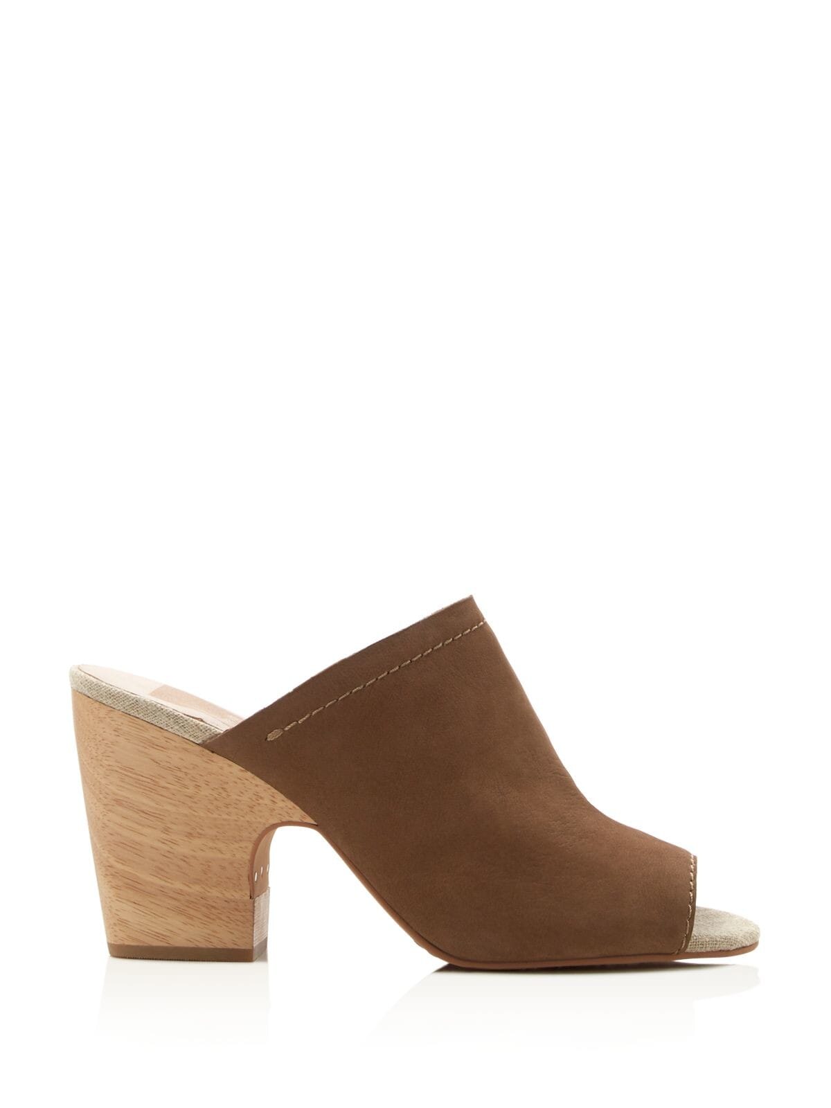 10410276 DOLCE VITA $140 MSRP Womens Brown Elastic Goring Padded Comfort Tegan Peep Toe Block Heel Slide Leather Heeled Mules Shoes 9