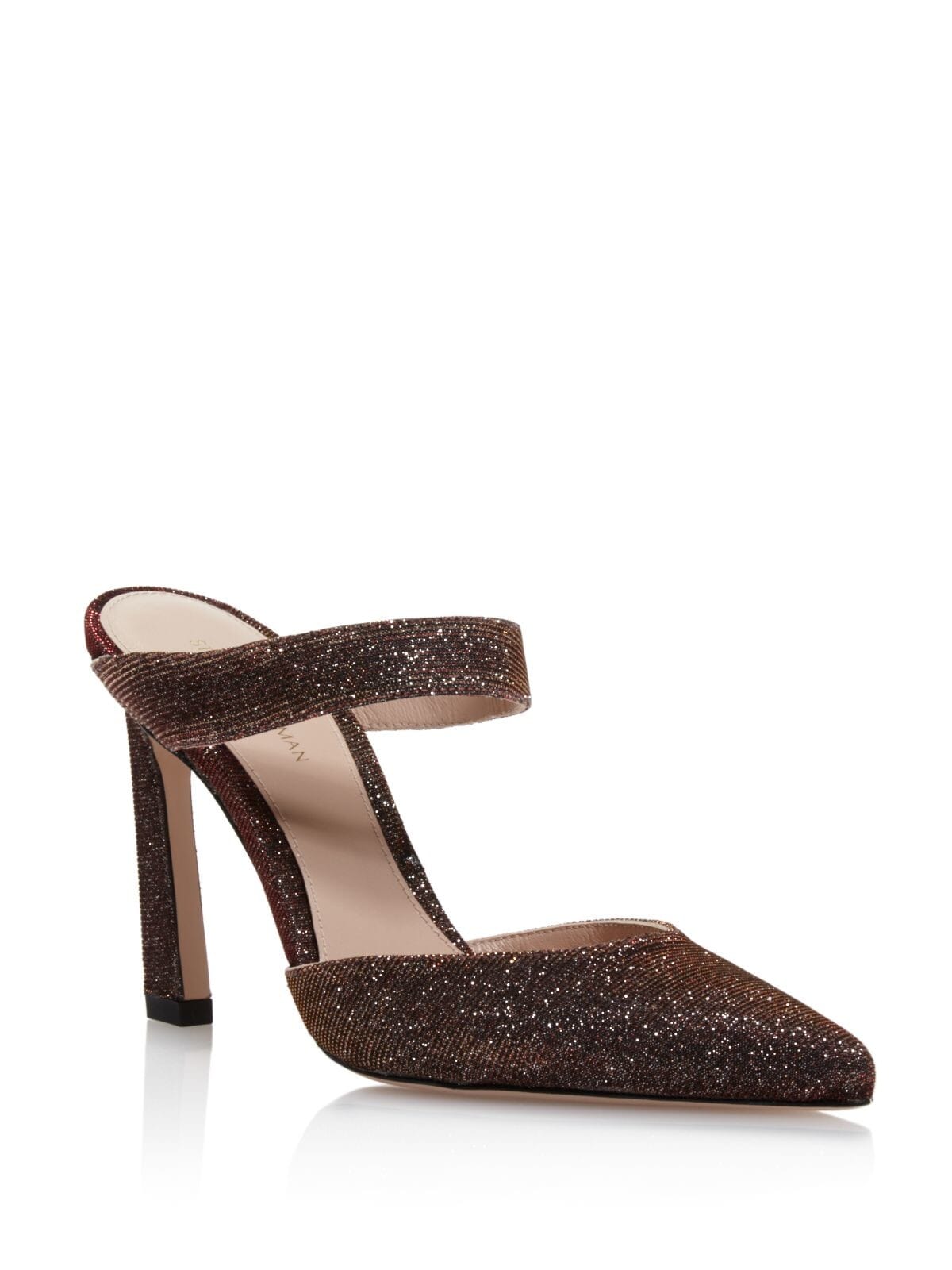 10410293 STUART WEITZMAN $435 MSRP Womens Bronze Nighttime Brown Ankle Strap Metallic Glitter Eventually Pointed Toe Slip On Dress Heeled Mules Shoes 6 M