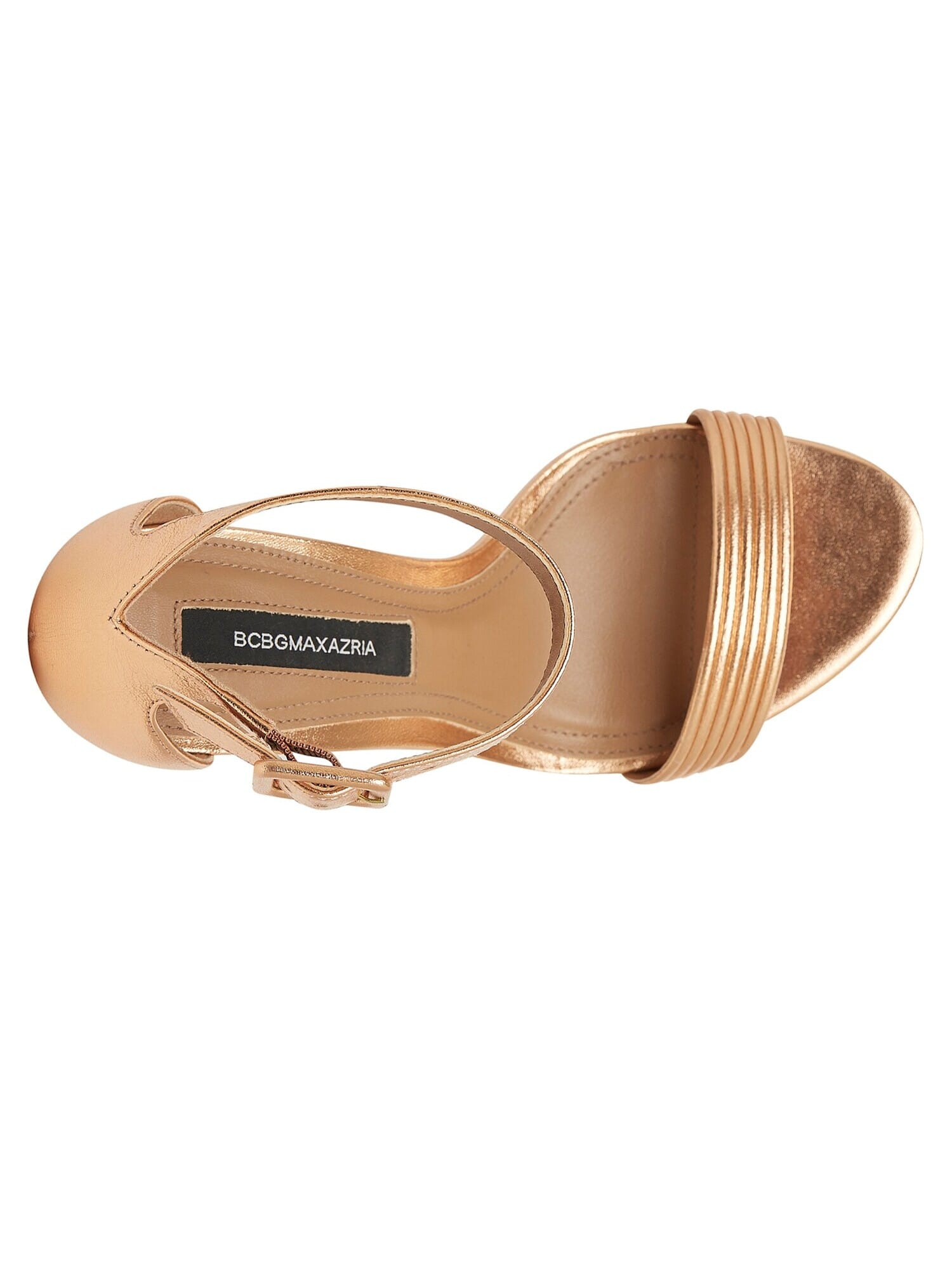 10411374 BCBG MAXAZRIA $188 MSRP Womens Gold Ankle Strap Padded Lucy Round Toe Stiletto Buckle Leather Dress Sandals Shoes 5 M