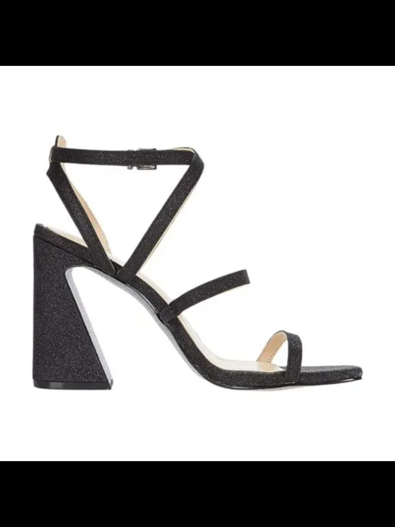 10411393 JESSICA SIMPSON $89 MSRP Womens Black Glitter Ankle Strap Padded Raymie 2 Square Toe Flare Buckle Dress Sandals Shoes 5.5 M