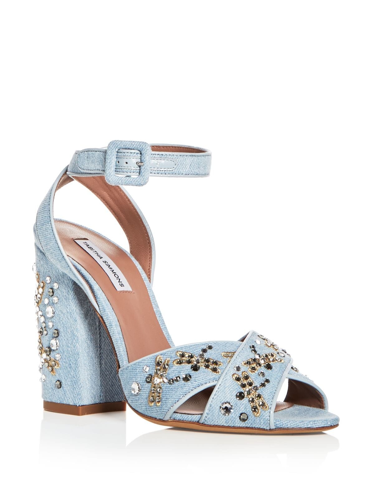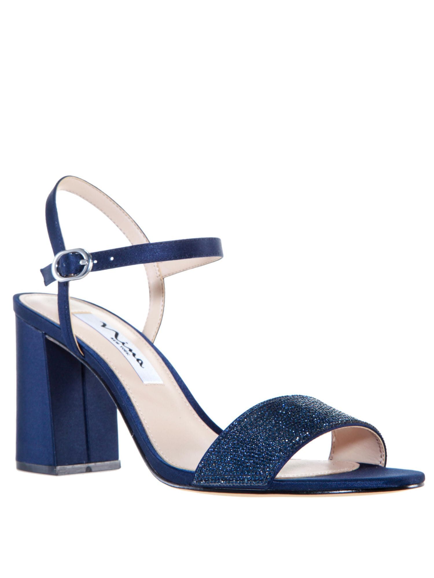 10411400 NINA $99 MSRP Womens New Navy Tiny Faceted Crystals Ankle Strap Padded New York Haven Almond Toe Block Heel Buckle Dress Sandals Shoes 6.5 M