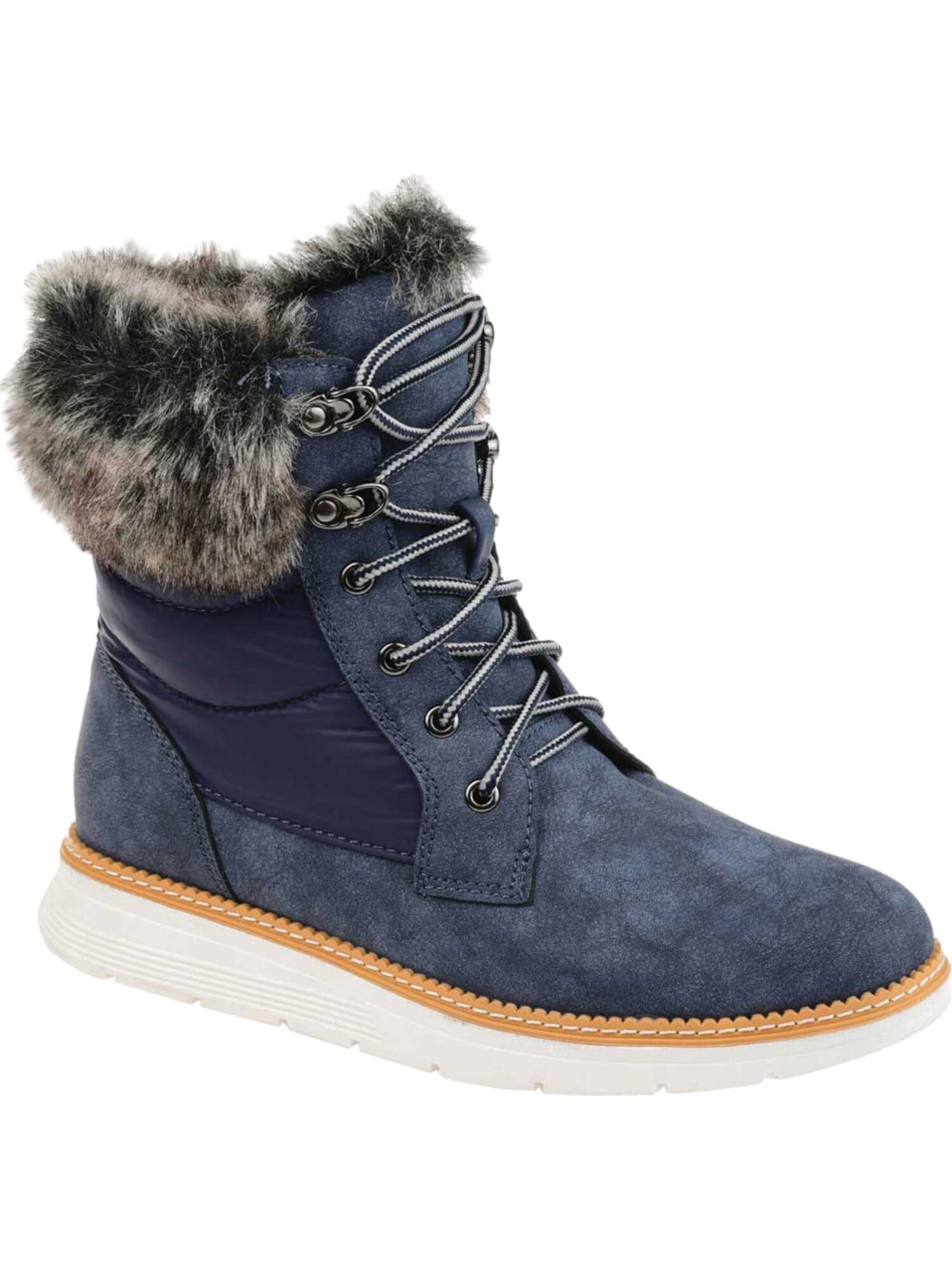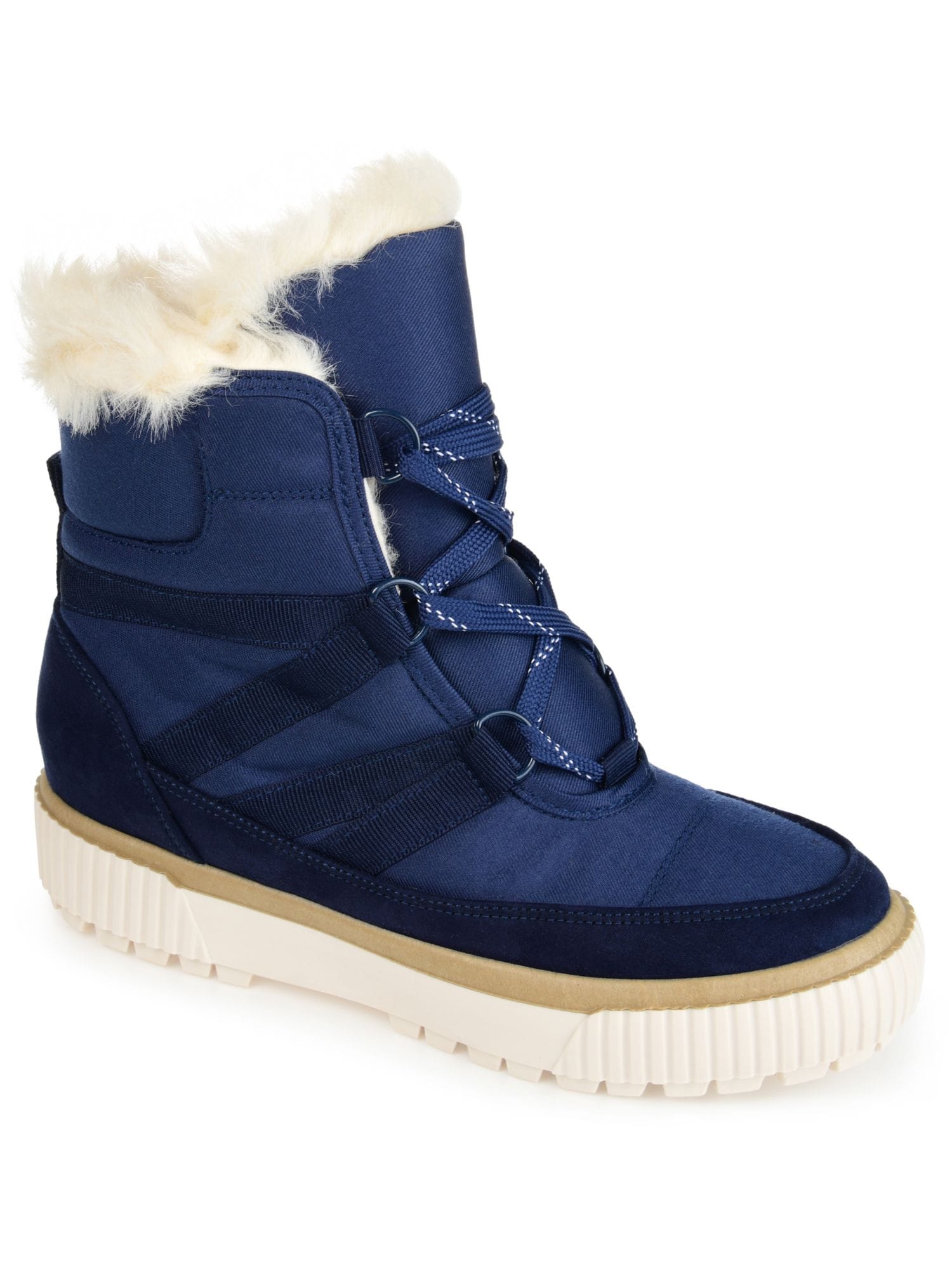 10411402 JOURNEE COLLECTION $99 MSRP Womens Navy Fur Trim Waterproof Flurry Almond Toe Lace-Up Snow Boots 7 M