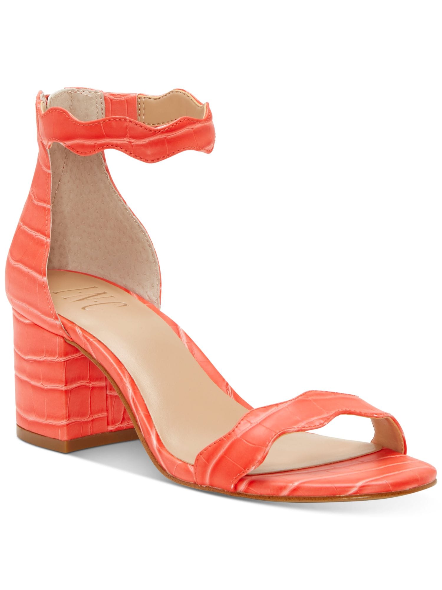 10411671 INC $79.50 MSRP Womens Orange Stretch Gore Scalloped Ankle Strap Hadwin Round Toe Block Heel Zip-Up Dress Sandals 10 M