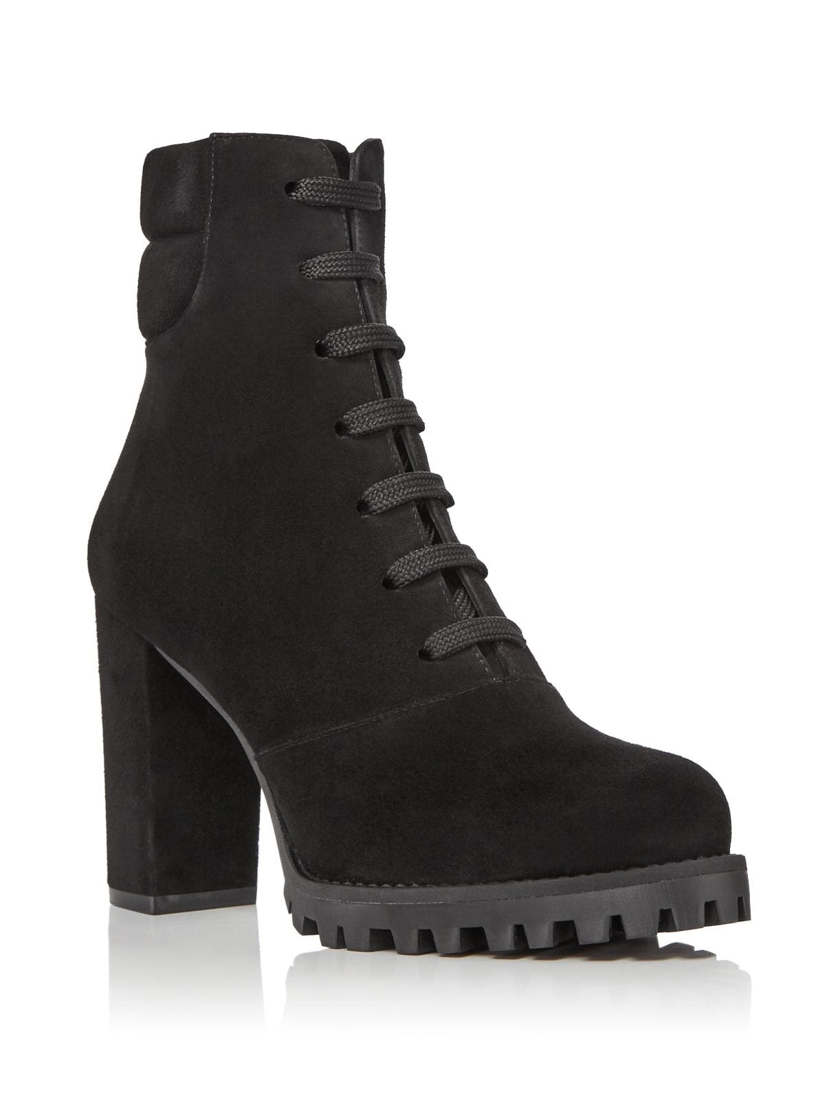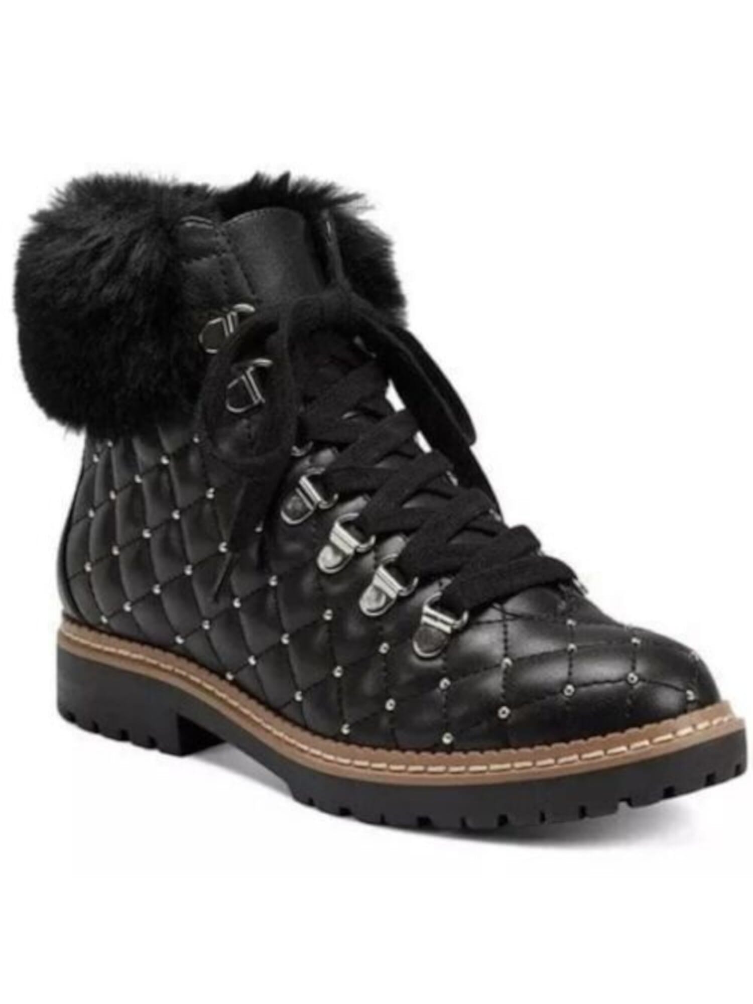 10411685 INC $129.50 MSRP Womens Black 1/2" Platform Studded Lug Sole Padded Fur Trim Quilted Pravale Round Toe Block Heel Lace-Up Booties 8 M
