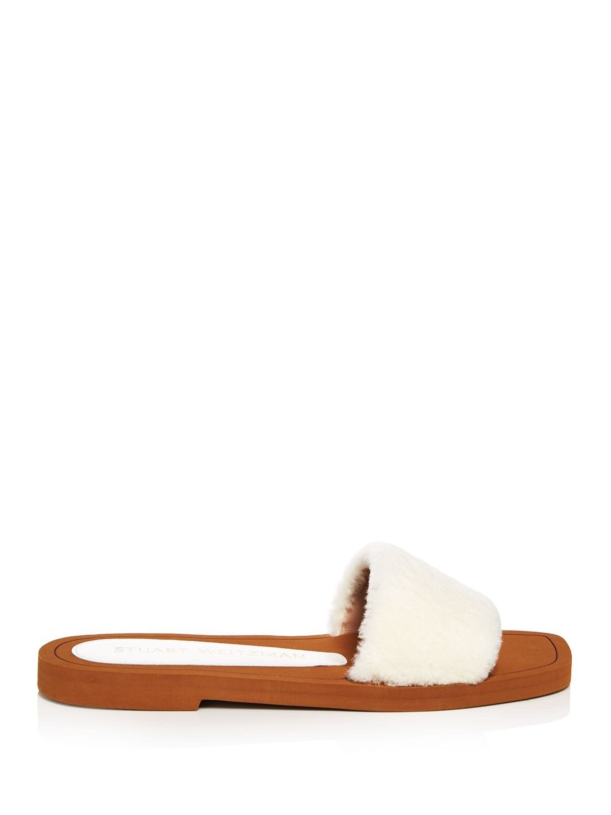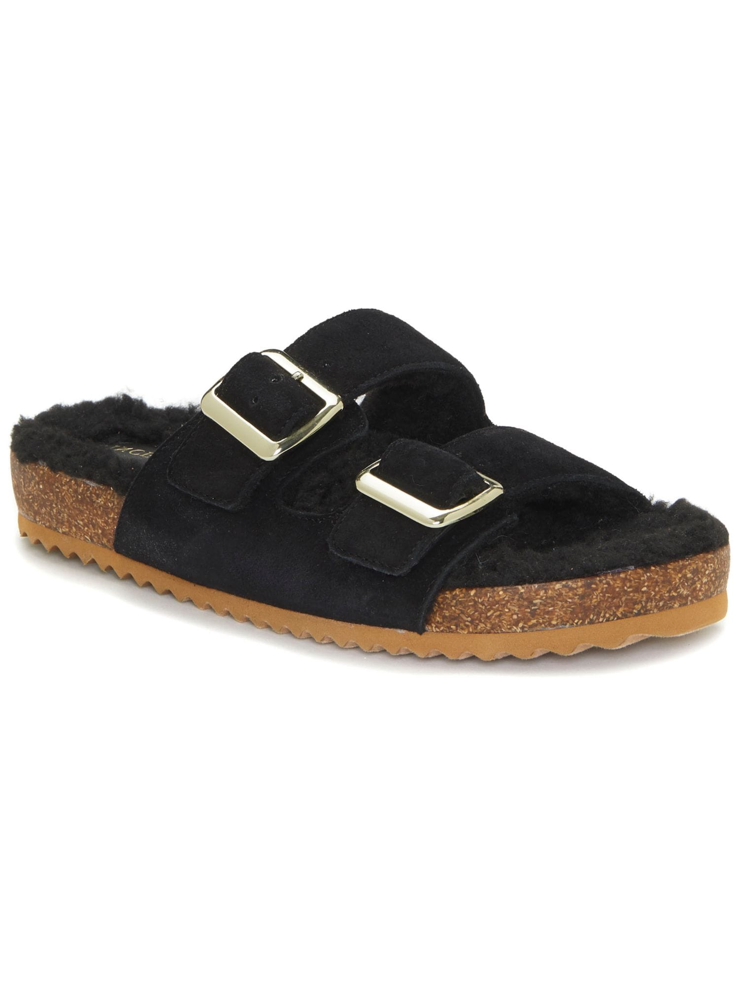 10411848 VINCE CAMUTO $79 MSRP Womens Black 1/2" Platform Buckle Accent Fur Trim Mannissa Round Toe Wedge Slip On Leather Slide Sandals 8.5 M