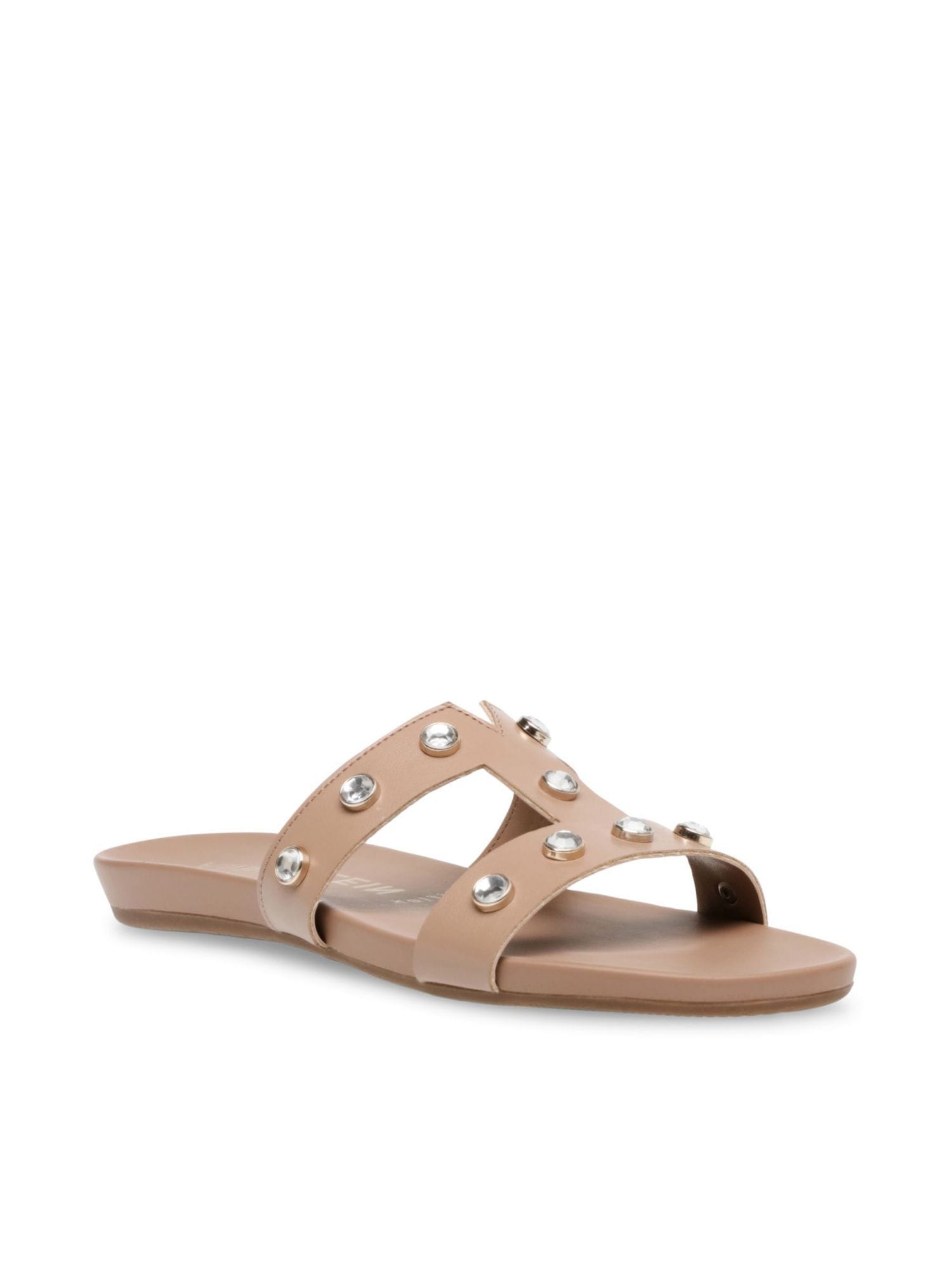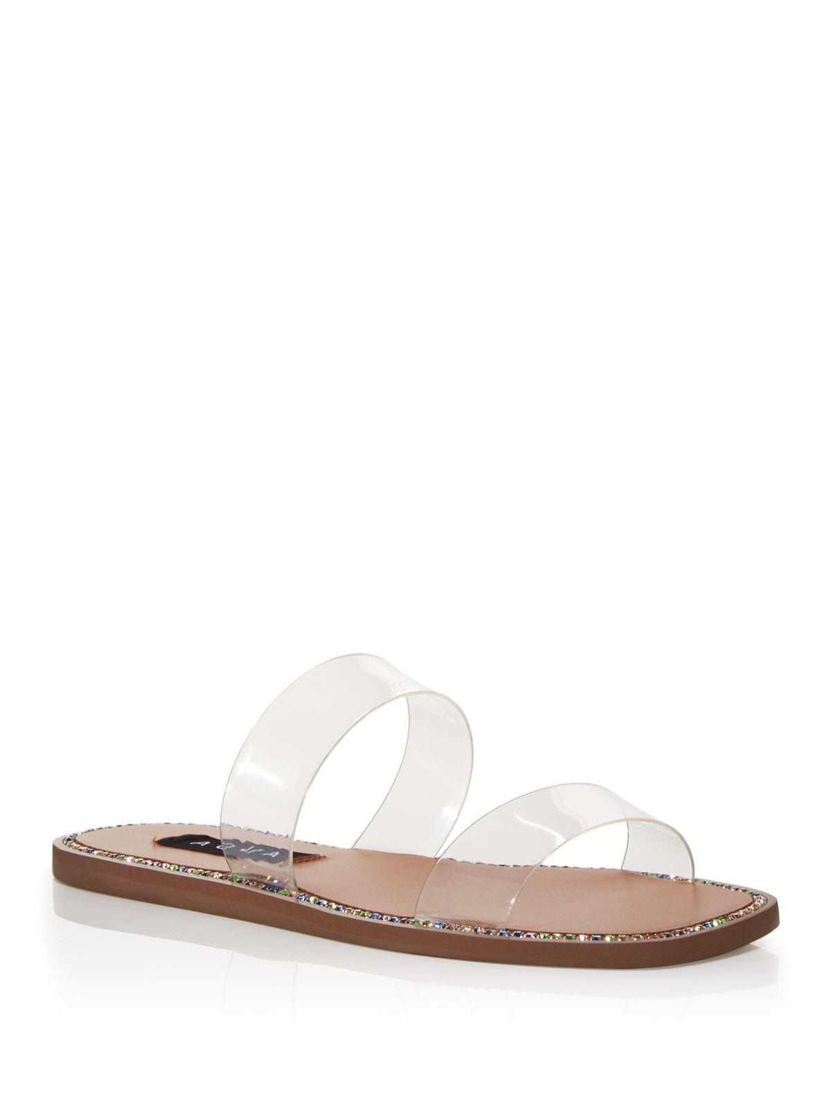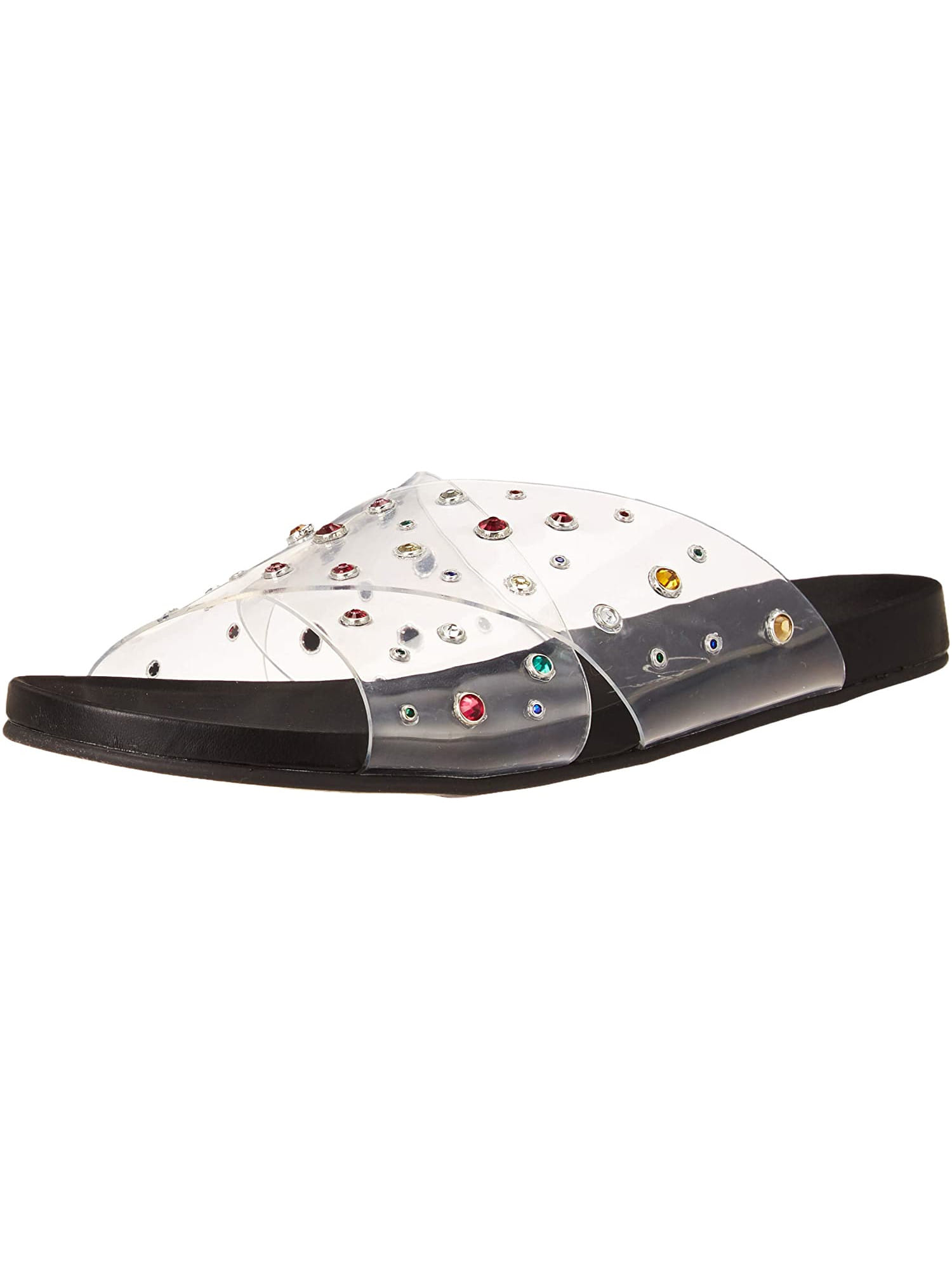 10413214 AQUA $72 MSRP Womens Brown Studded Rhinestone Glow Square Toe Slip On Slide Sandals 6.5 M