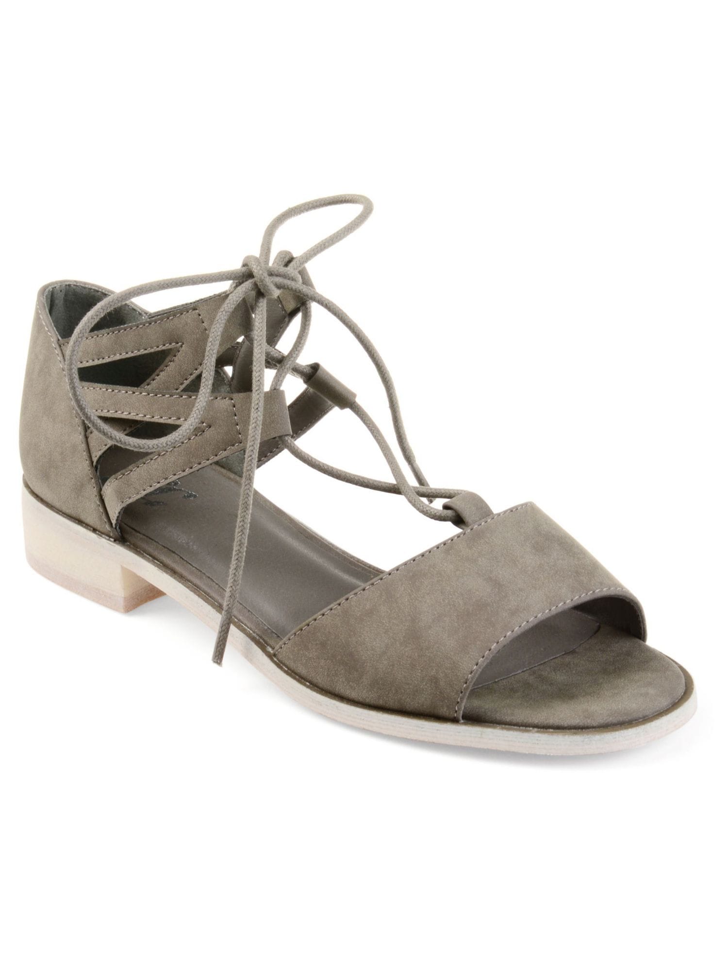 10413661 JOURNEE COLLECTION $65 MSRP Womens Gray Ghille Lace Up System Traction Outsole Padded Ingrid Round Toe Block Heel Lace-Up Sandals Shoes 10