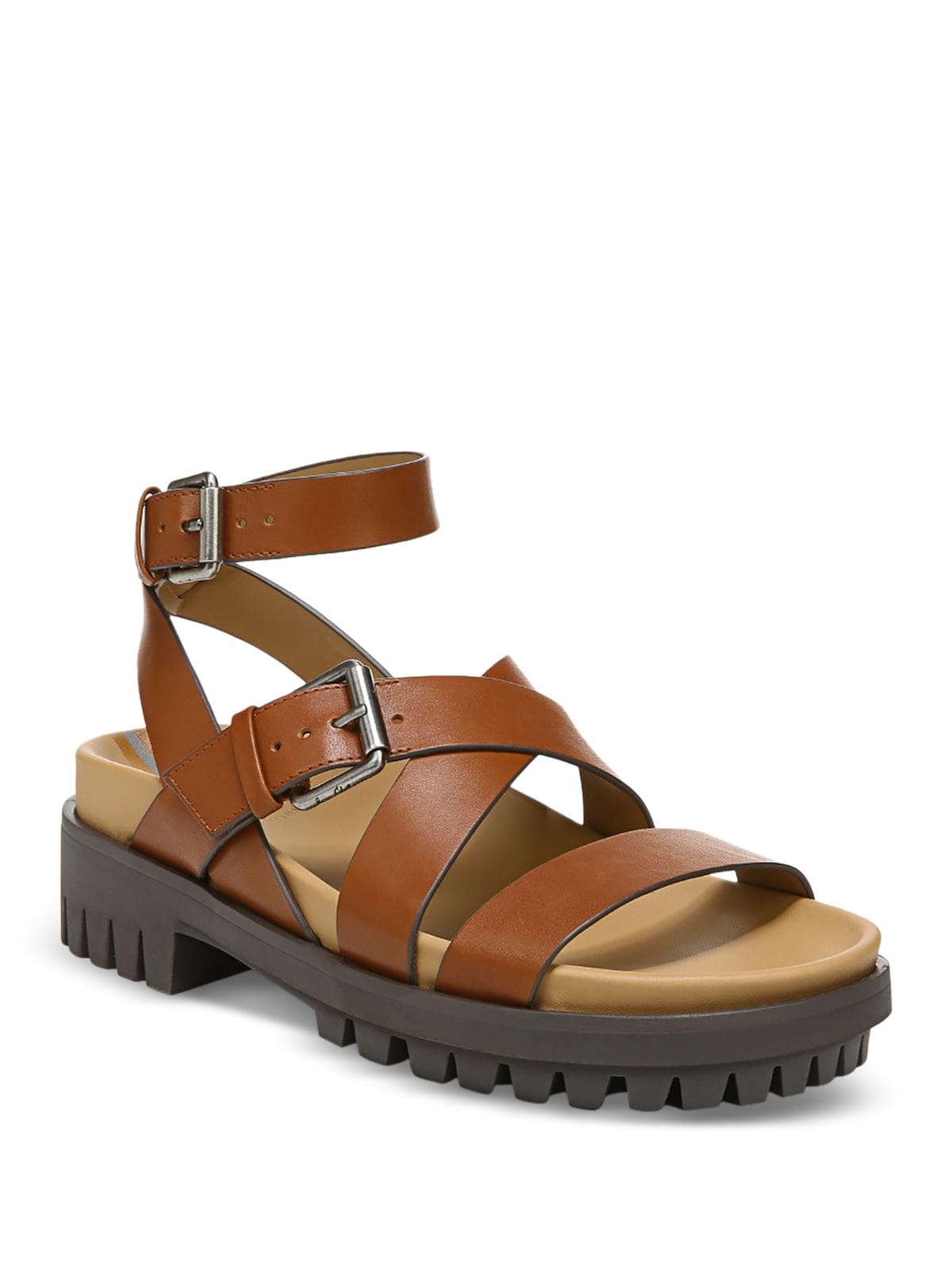 10413687 SAM EDELMAN $120 MSRP Womens Brown 1-1/2" Platform Cushioned Lug Sole Adjustable Strap Eleanora Round Toe Block Heel Buckle Leather Gladiator Sandles 5 M