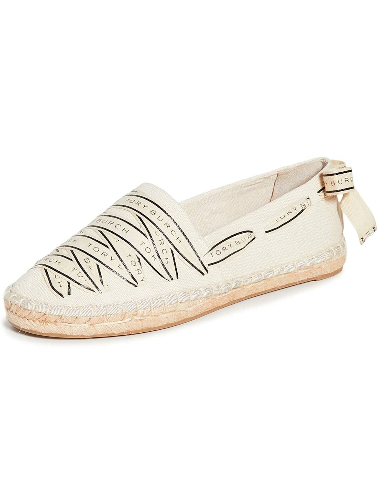 10413701 TORY BURCH $198 MSRP Womens Beige Logo 1/2" Platform Jute Wrapped Bow Accent Comfort Logo Grosgrain Round Toe Slip On Loafers 10.5