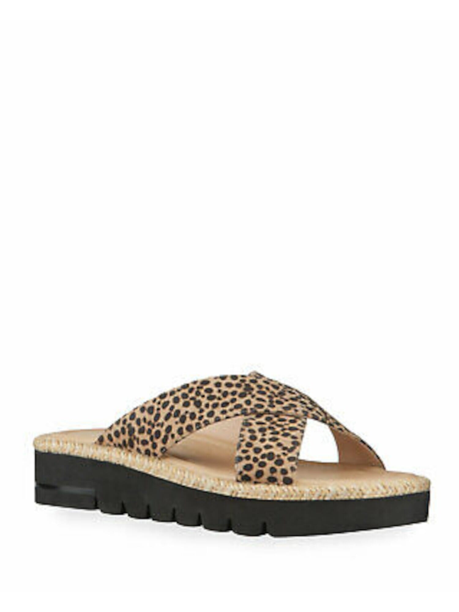 10410272 J/SLIDES $145 MSRP Womens Beige Leopard Print Calf Hair Elastic Goring Braided Logo Karla Round Toe Platform Slip On Leather Athletic Sneakers 7.5 M