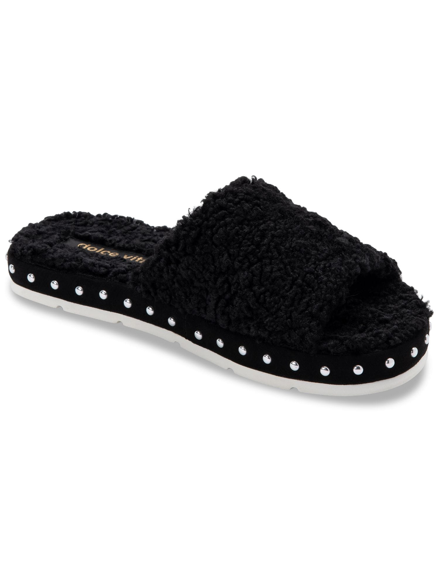 10411992 DOLCE VITA $60 MSRP Womens Black Studded Logo Mochi Round Toe Platform Slip On Slide Sandals 7