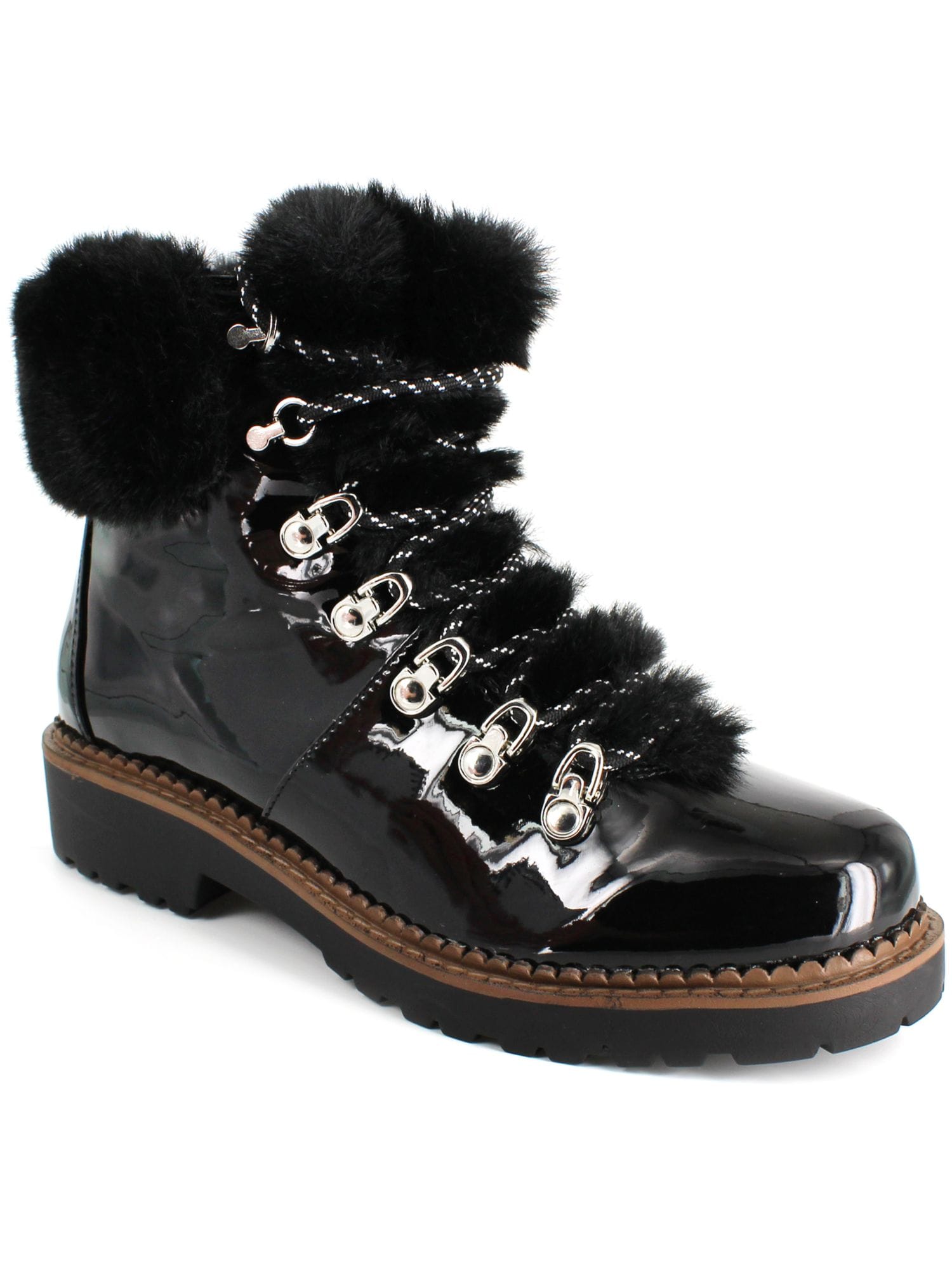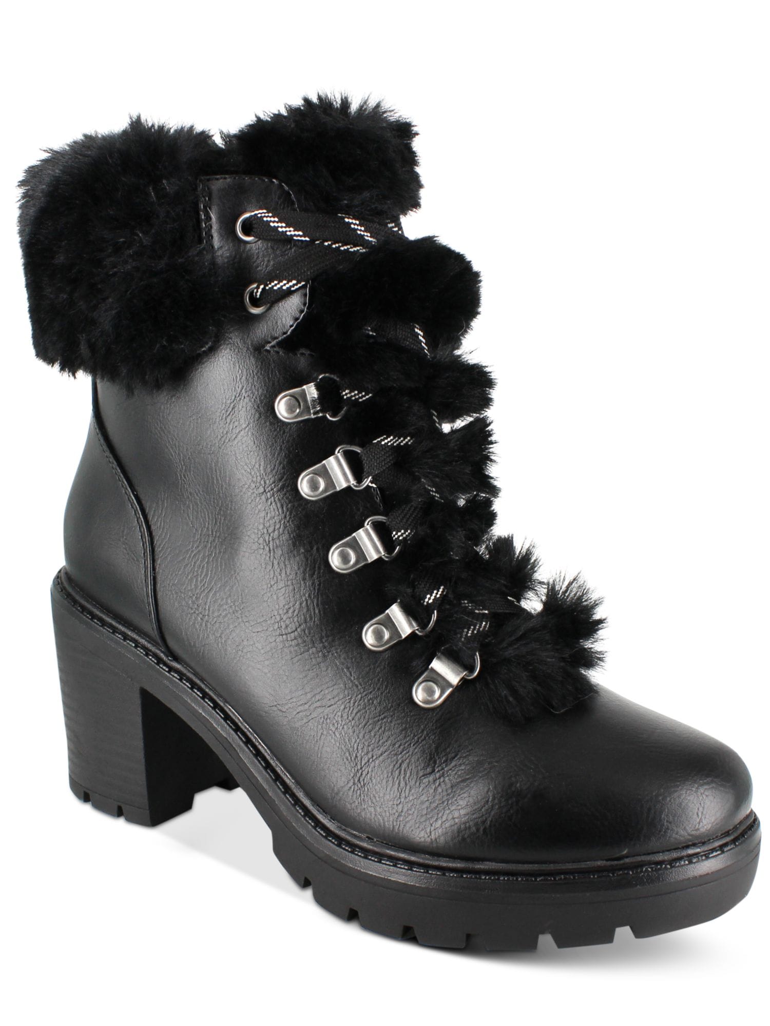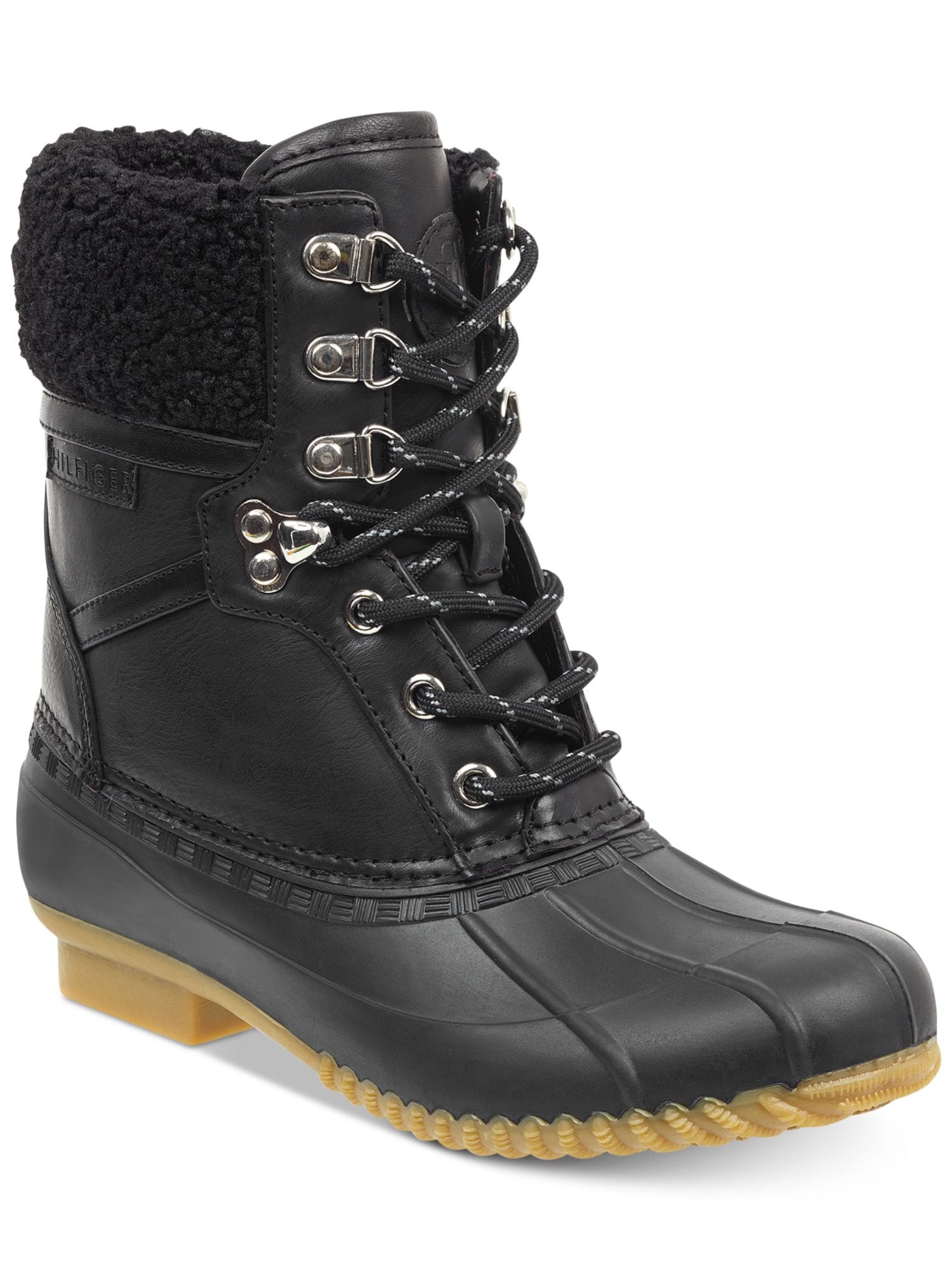 10412296 JBU $79 MSRP Womens Black Mixed Media Water Resistant Fur Trim Non-Slip Chilly Round Toe Lace-Up Snow Boots 8.5 M