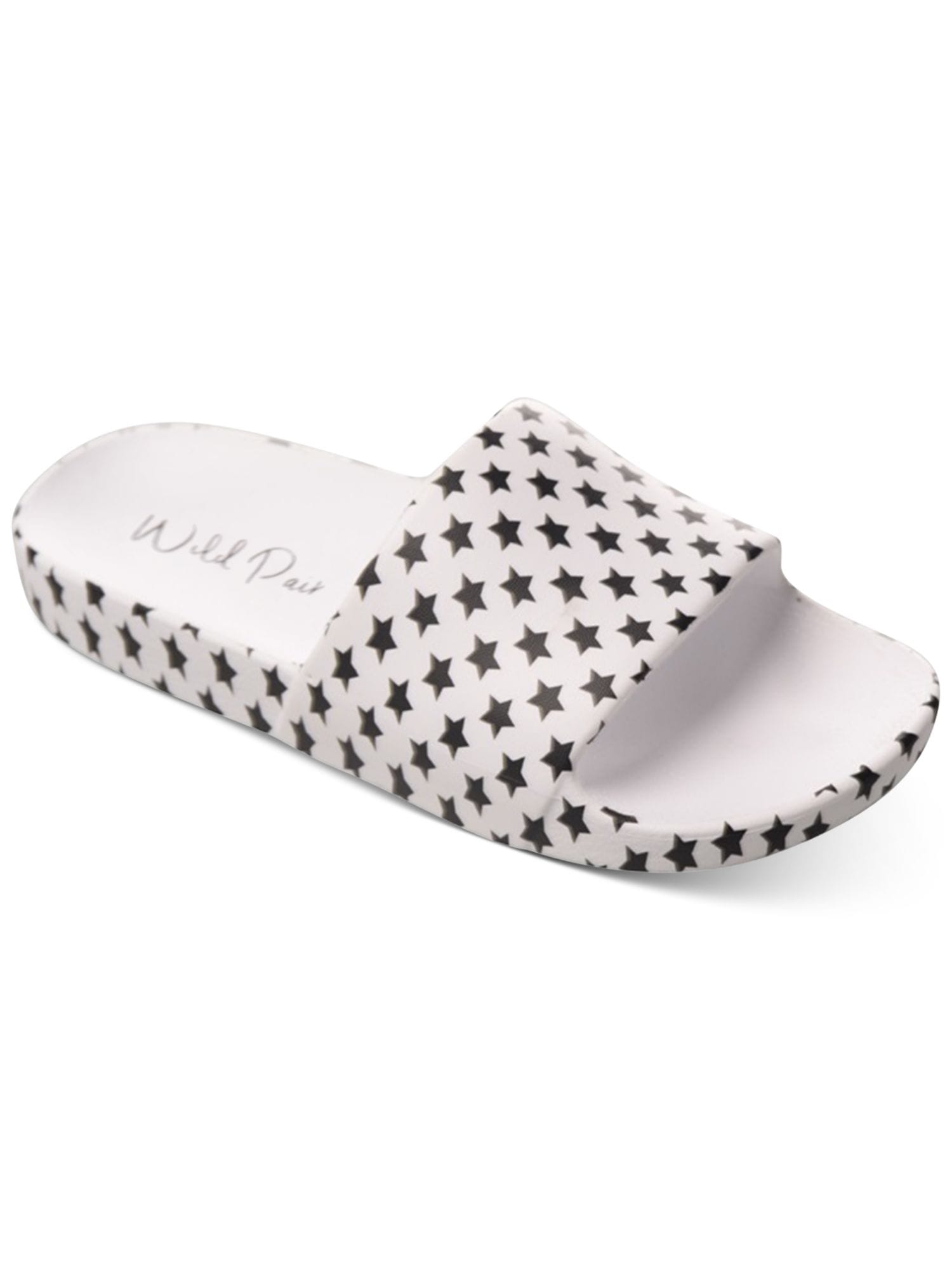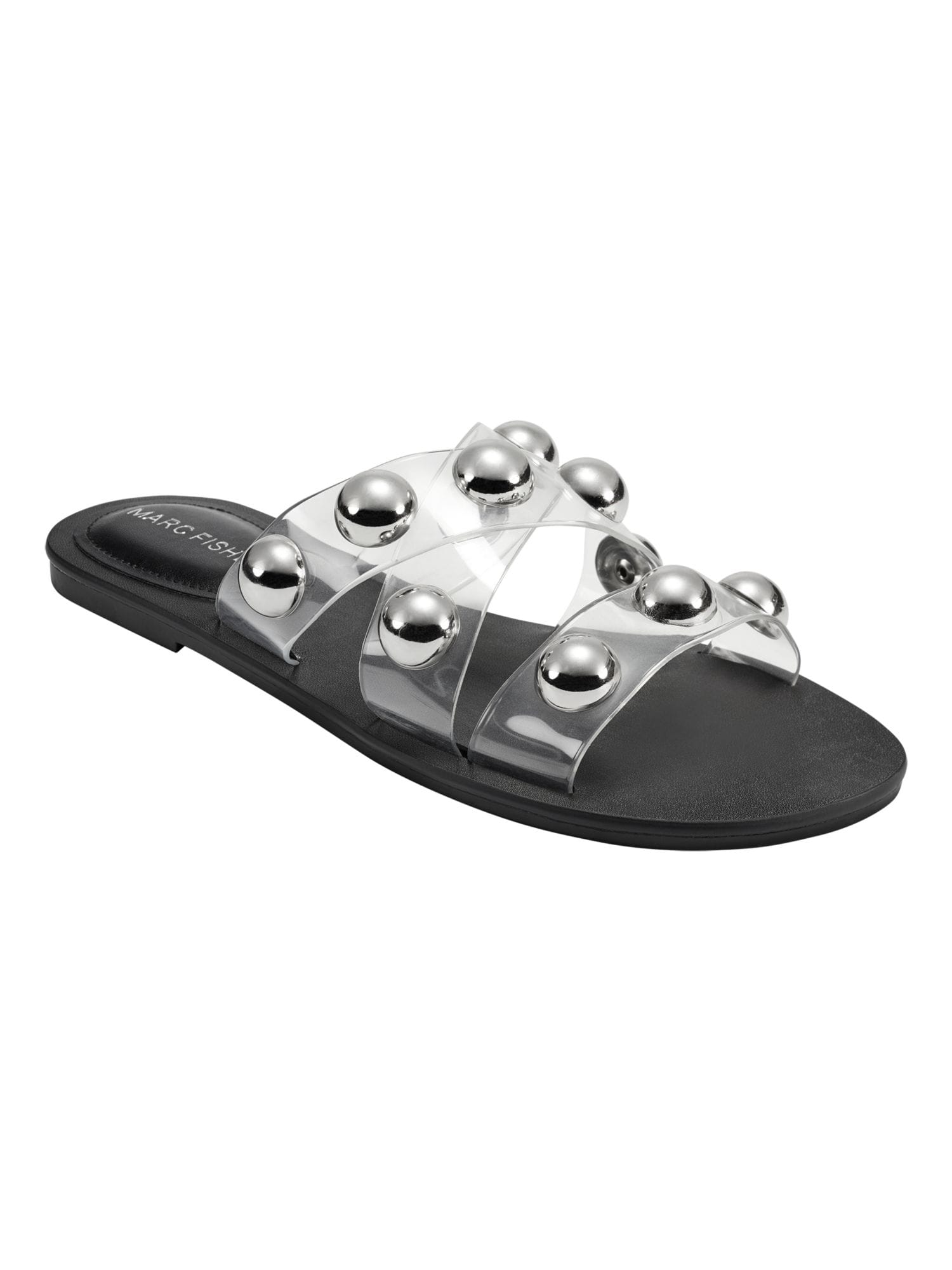 60423195 INC $59.50 MSRP Womens Silver Mixed Media Embellished Pelle Square Toe Slip On Slide Sandals Shoes 5 M