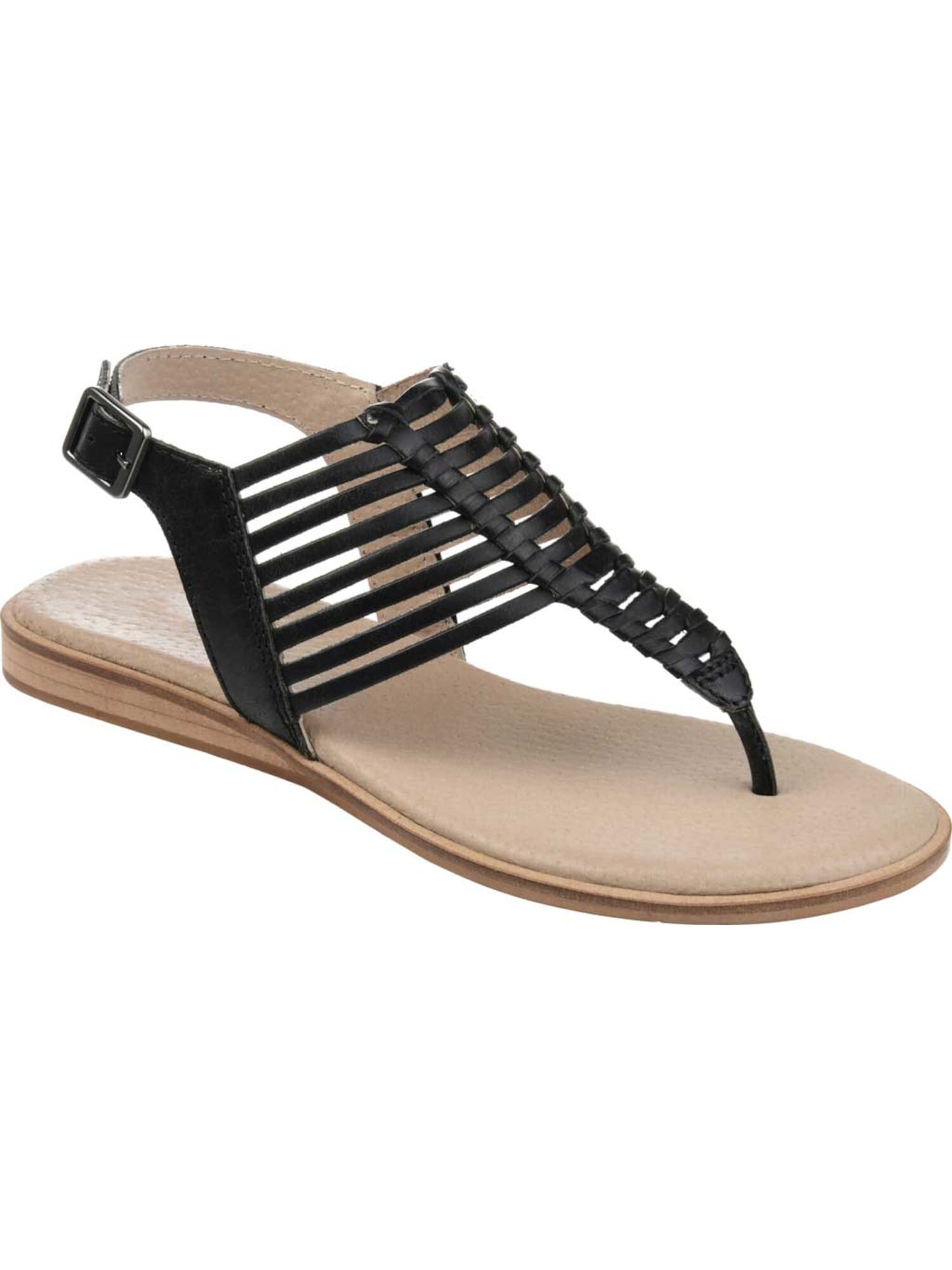 10411076 AQUA $69 MSRP Womens Black Toe-Loop Cushioned Braided Slay Open Toe Slip On Leather Slide Sandals 5.5